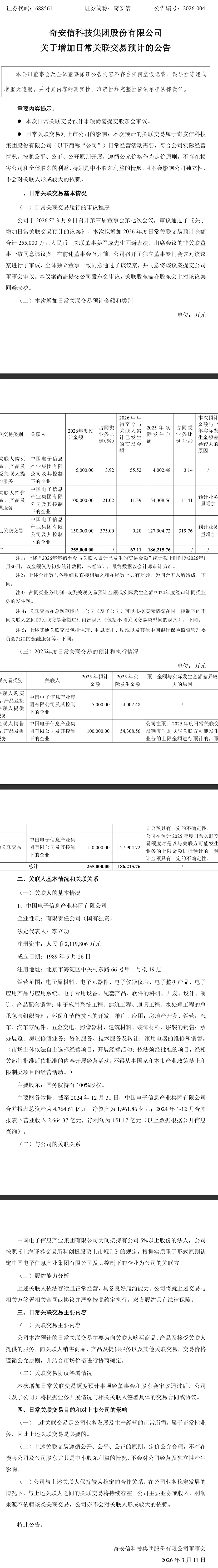 奇安信3月10日晚间发布《奇安信关于增加日常关联交易预计的公告》,公告信息显示: