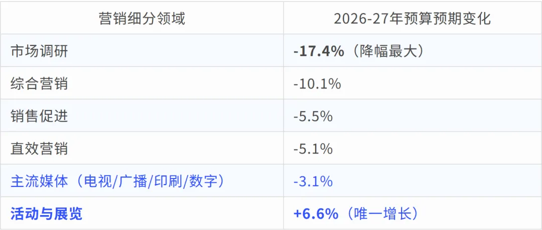 引言:两个世界的分叉路口2026年初,两组来自截然不同领域的数据,不约而同地指向了同一个结论。第一组数据来自资本市场:去年市场上一个怪异现象。Stoxx 600媒体板块是指数中落后的,但富时100之中的Informa(INF)逆势而上。据花旗公司称,2025年媒体表现低于欧洲基准指数超过30个百分点,尽管盈利增长预期仅下降了个位数高位,如果不计WPP(WPP)则更低。RELX股价一年内跌约30%,而以展览为核心的英富曼集团(Informa)却逆势跑赢媒体板块25个百分点,估值持续向行业顶尖水平靠拢。第二组数据来自营销预算:英国广告业权威机构IPA(广告从业者协会)在其2026年1月季度报告中,将"Events(活动/展览)"列为所有营销细分领域中唯一实现预算增长的板块,预期增幅达6.6%,而市场调研、销售促进、直效营销、主流媒体等其他所有板块均面临不同程度的预算削减。投资者在用真金白银投票,营销人员在用预算分配投票——两者共同构成了一个历史性的信号:在人工智能深度重塑信息与媒体格局的当下,展览业正在从一个长期被低估、被边缘化的行业,蜕变为整个商业生态中最具确定性价值的基础设施之一。IPA的"迟来承认"——一段值得铭记的历史