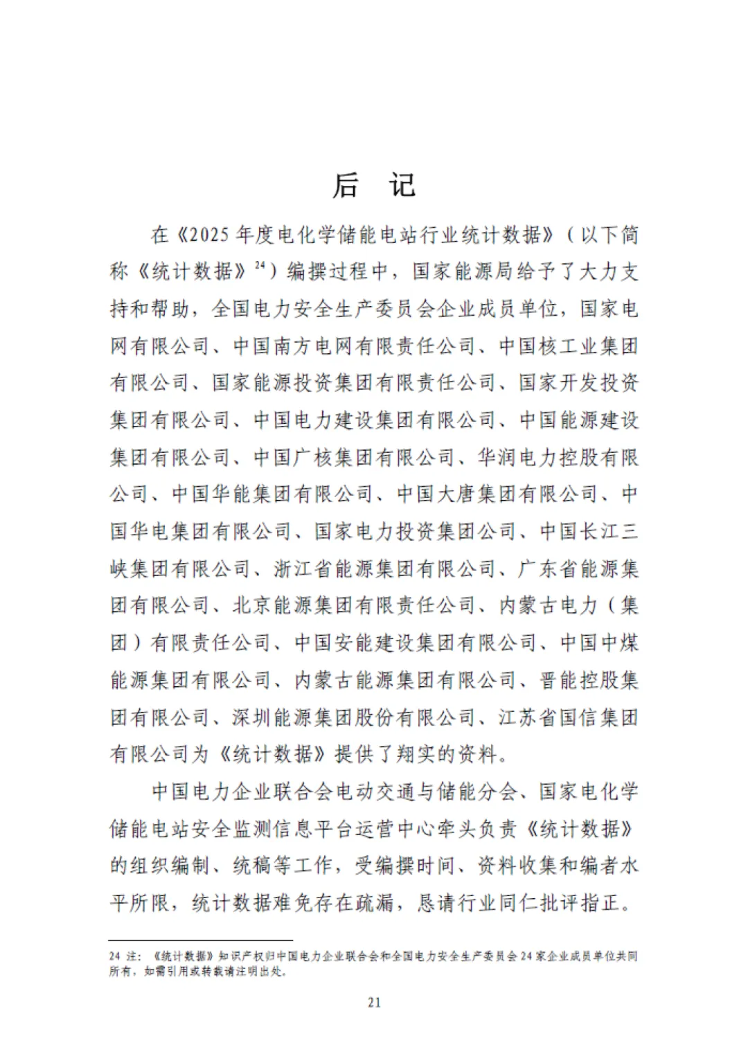 《统计数据》由中电联电动交通与储能分会负责组织编制、统稿。《统计数据》正逐步成为支持电化学储能科学发展和服务中国电力企业联合会会员企业的重要载体,成为记录、了解、研究我国电化学储能行业发展的重要参考资料。