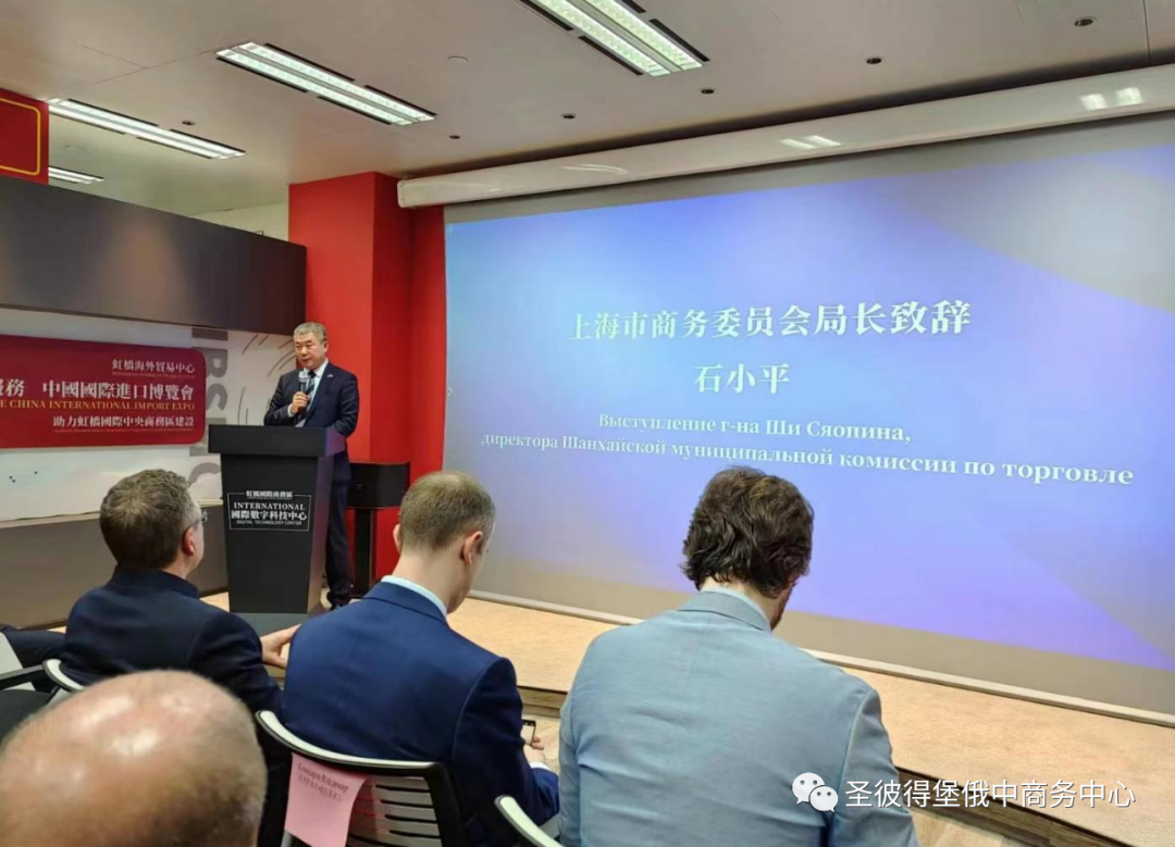 上海市商务委员会石小平局长在致辞中讲到,今年是上海与圣彼得堡结为友好城市35周年。两市结好以来,双方在经贸、投资、人文、旅游、教育等领域交流合作,取得丰硕成果。作为中国的经济中心城市和改革开放的窗口,近年来,上海持续推进与俄罗斯的经贸合作提质升级。在贸易方面,上海对俄罗斯货物贸易进出口额从2015年的280.45亿元人民币,大幅提升至2022年的608.89亿元人民币。2022年,“中欧班列—上海号”中俄线开行班列38列,货值9.8亿元人民币,3772个国际标准箱,占出口总箱量的74.3%。俄中商务中心就是于2015年在圣彼得堡成立,其上海代表处于2021年在上海成立,致力于服务俄中两国政府及企业间的经济贸易交流与合作。在此,我谨代表上海市商务委员会,向俄中商务中心为深化两地经贸合作作出的积极贡献表示衷心的感谢。上海总领馆副总领事科米萨洛夫·弗拉基米尔在致辞中表示,很高兴来到俄中商务中心(俄罗斯)上海代表处出席这场高质量的会议,并与许多中国优秀企业交流,他对俄中两国在各领域的合作前景充满信心。希望代表处能更多组织这样的对接活动。同时,还带来总领事对首席代表的问候。俄罗斯出口中心马克西姆首席代表为大家介绍了俄罗斯食品企业参加五届进博会的情况,他也希望未来能看到中国优质食品能进入俄罗斯市场。