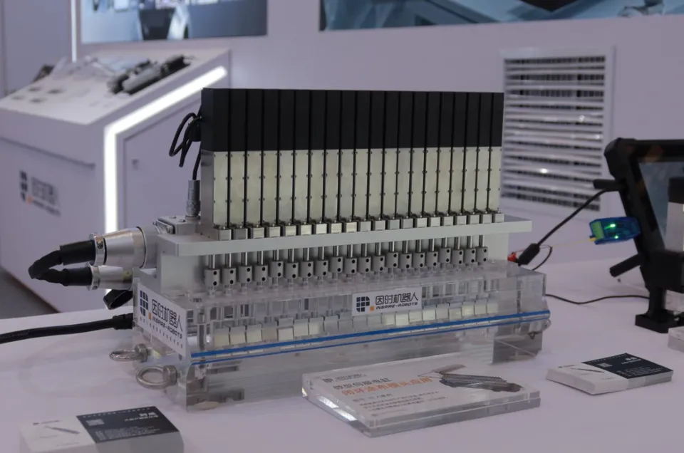 3月25日-27日,慕尼黑上海电子生产设备展再度强势登陆上海。作为智造行业的风向标,本届展会全面展示了从SMT到自动化集成的全产业链创新。其中,机器人灵巧手作为人形机器人与具身智能的核心执行部件,正从实验室走向生产线,为电子生产设备注入了前所未有的灵活性。作为行业领先的灵巧操作领导者,因时机器人携全矩阵产品惊艳亮相,不仅展示了丰富的产品线,更通过多种创新工装演示,让现场观众直观感受到“仿人五指灵巧手”与“微型伺服电缸”的卓越性能。为了让观众更直观地理解产品性能,因时机器人别出心裁地设置了多种互动工装,将枯燥的技术参数转化为可感知的视觉体验:在现场的F1系列灵巧手“视觉跟随展示”演示中,灵巧手能实时响应视觉系统的指令,实时跟随人手的手势动作。而F1系列“指尖抓握力”的展示更是让观众惊叹——看似精巧的手指,实则蕴含着稳定的15N单指主动输出力。DFX系列灵巧手抓握5KG壶铃与10KG哑铃这两项动态演示直观展示了灵巧手在承受重负载时的稳定性,同时也表现出极强的刚性和精准的力控,印证了其在工业搬运场景中的可靠表现。BFX系列灵巧手猜拳互动是这是展台最具人气的区域,人手通过与灵巧手进行“石头、剪刀、布”的猜拳对决,观众能近距离观察灵巧手在高速率下的手指协同与反馈速度,展现出极强的灵活性,这也正是BFX系列的独特魅力。在展会现场,因时机器人同样也展示了备受市场关注的G2系列高自由度灵巧手,在现场演示中直观呈现了内置的30余种预设动作库,涵盖抓、捏、转、按等多种动作形式。一系列连贯流畅的动作演示,并非单纯的概念展示,而是灵巧手在算法、控制与硬件协同方面成熟度的直接体现。在展会现场,因时机器人展台人气始终不减。从动态负载演示中稳稳提起壶铃的灵巧手,到人机猜拳区与观众灵活过招的BFX系列;从触觉感知演示,到G2系列高效流畅的动作展示,这些演示并非“炫技”,而是因时机器人向行业传递的清晰信号:我们的产品矩阵足够全面,我们的技术足够可靠,我们的解决方案能够深入千行百业。正是通过这样一场“看得见”的实力检阅,观众得以直观感受到——无论是重负载搬运,还是精细操作,因时灵巧手都能从容应对。而这一切精准运动的背后,都离不开核心部件——微型伺服电缸的驱动。正是这颗“肌肉”,让灵巧手的每一次抓握都有了力量驱动。
