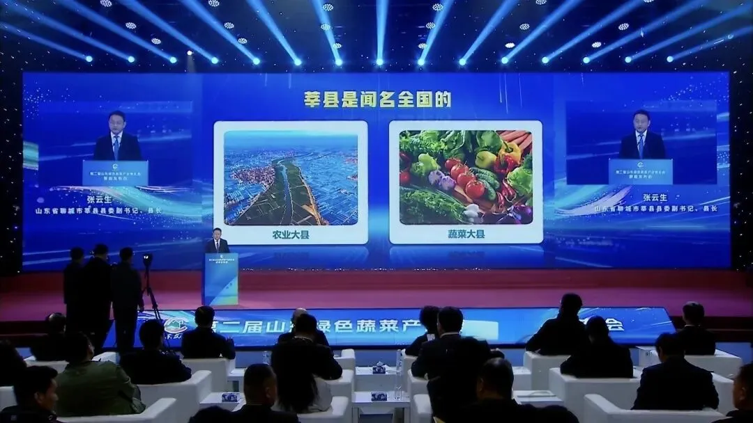 聊城市人民政府副市长马卫红在致辞中,全面推介了聊城及莘县蔬菜产业核心优势。她表示,聊城是全国“菜篮子”主要供应基地,全市蔬菜播种面积230余万亩,年产量达到1000万吨,享有“中国蔬菜第一市”的美誉。莘县蔬菜播种面积和产量占全市一半以上,居全国县域之首,“莘县蔬菜”已成为响当当的全国知名品牌。第二届山东绿色蔬菜产业博览会将在莘县开幕,集中展示种业振兴、绿色农资、智慧农业等领域的创新成果,诚邀各界朋友相聚莘县、共促合作。