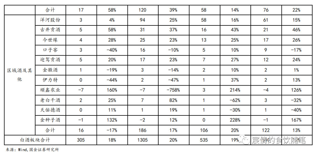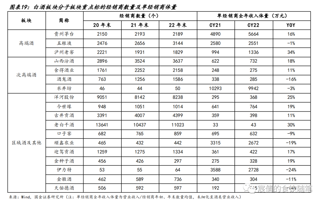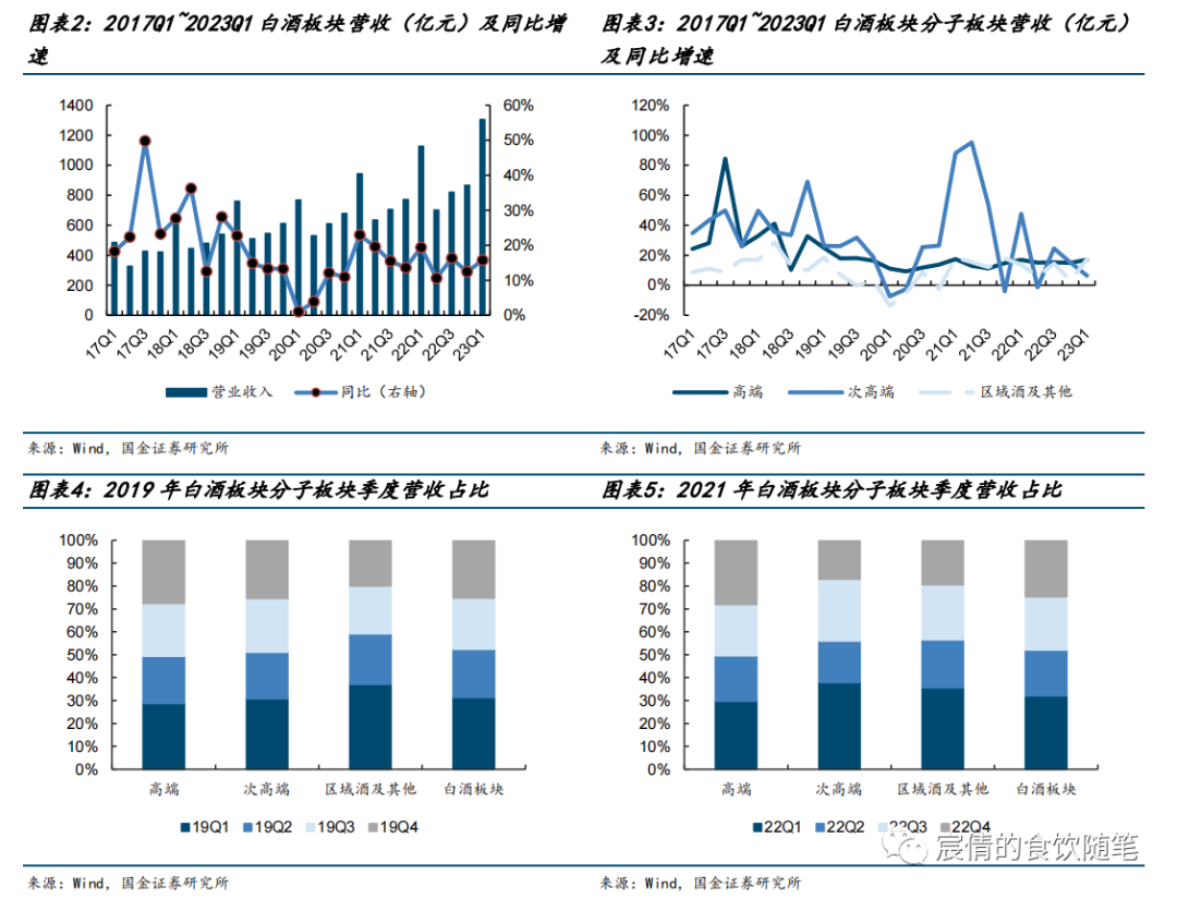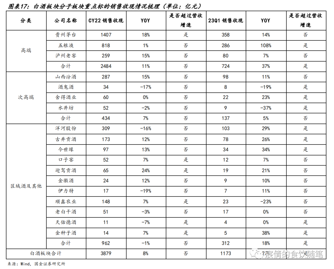 2)23Q1板块整体实现营收1305亿元(同比+15.7%),其中区域酒及其他(+17.4%)>高端酒(+17.2%)>次高端(+6.5%);