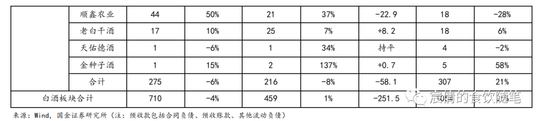 1)22年板块整体销售收现3879亿元,同比+7.7%,慢于同期营收增速。其中,高端酒/次高端/区域酒及其他分别同比+11.5% /+7.2%/-0.8%,均慢于同期营收增速。