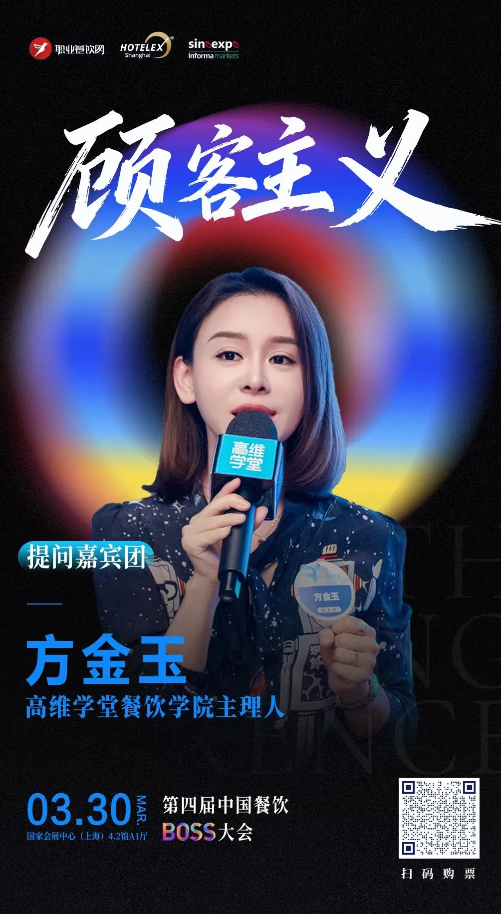 高维学堂餐饮学院主理人方金玉,将作为提问团嘉宾亲临现场!