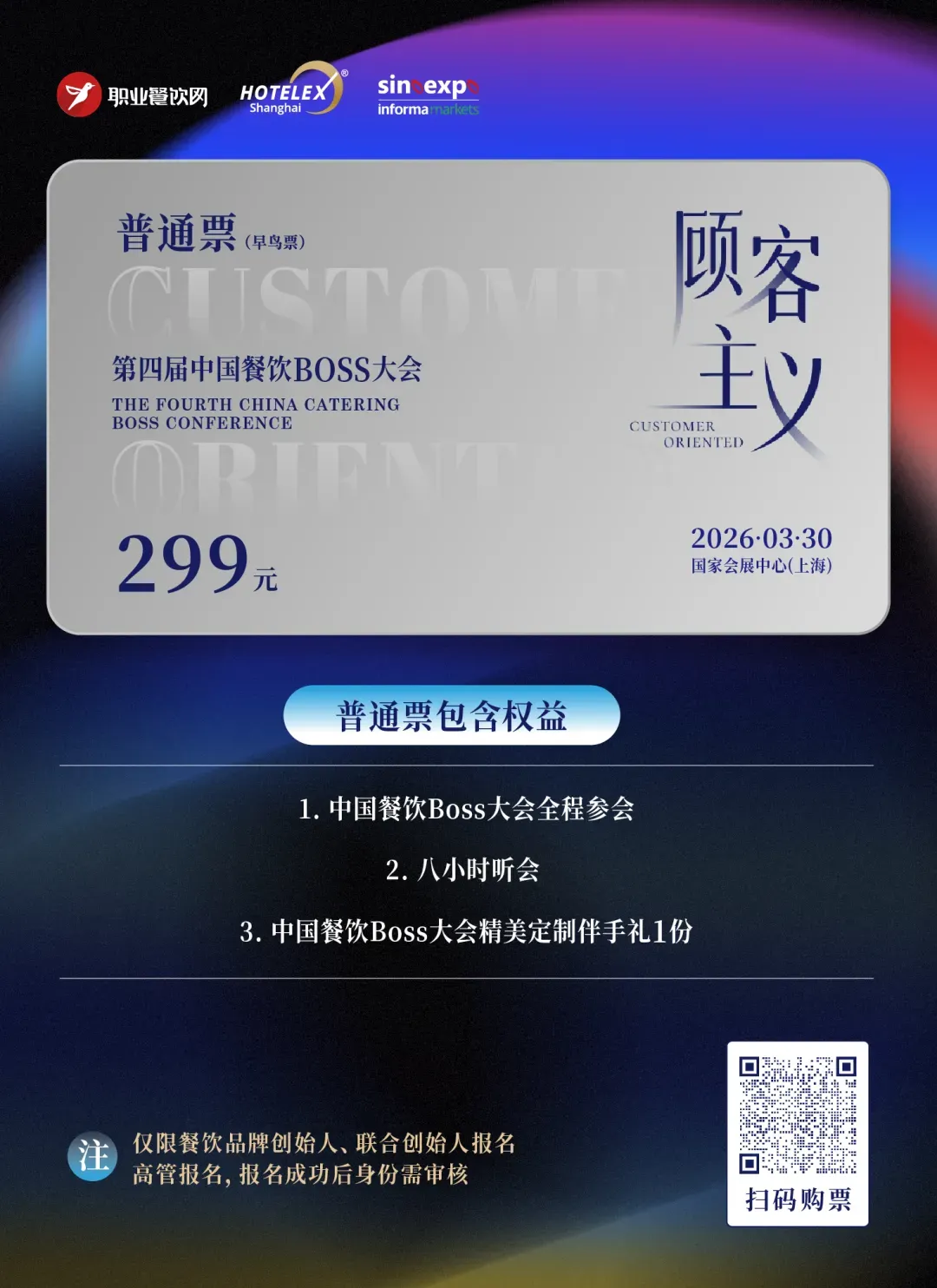 3月30日,在国家会展中心(上海),职业餐饮网携手HOTELEX 上海国际酒店及餐饮业博览会,以“顾客主义”为主题,举办第四届中国餐饮BOSS大会。