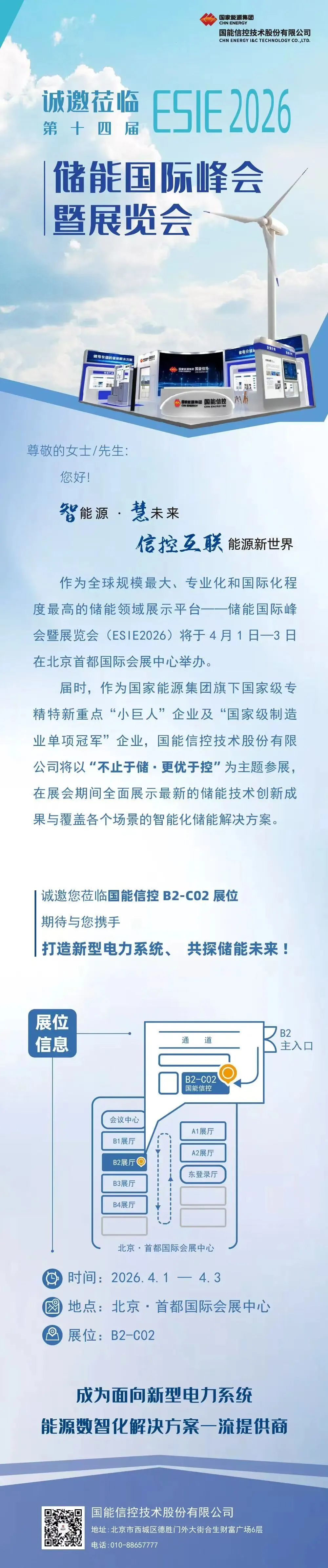 国能信控已确认参展第十四届储能国际峰会暨展览会ESIE 2026,展位设于B1馆C02,诚邀产业同仁莅临交流!