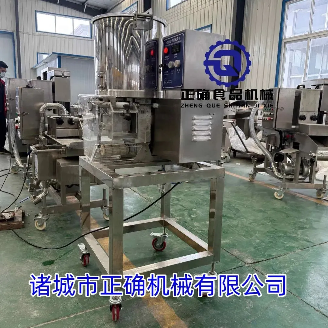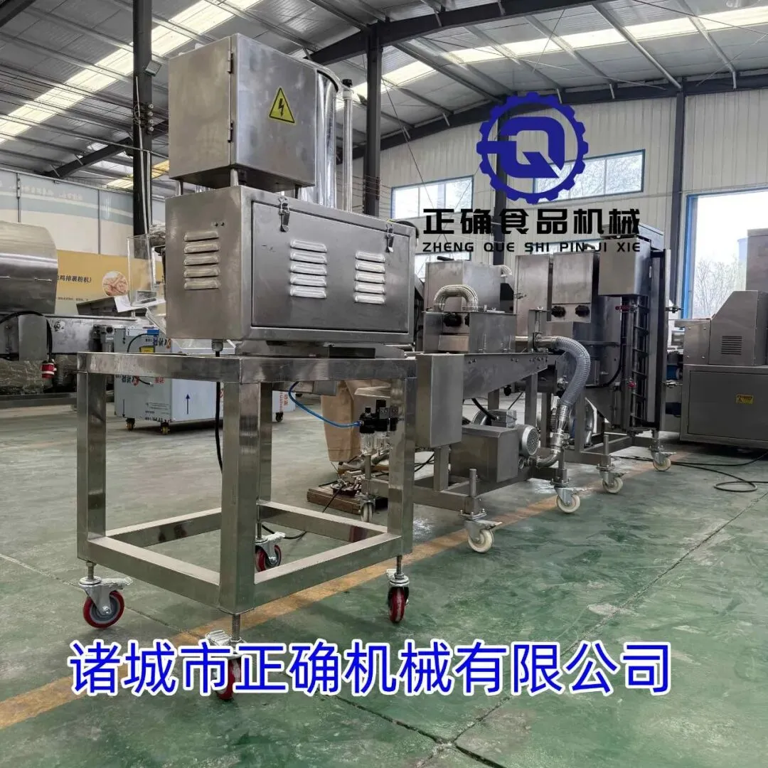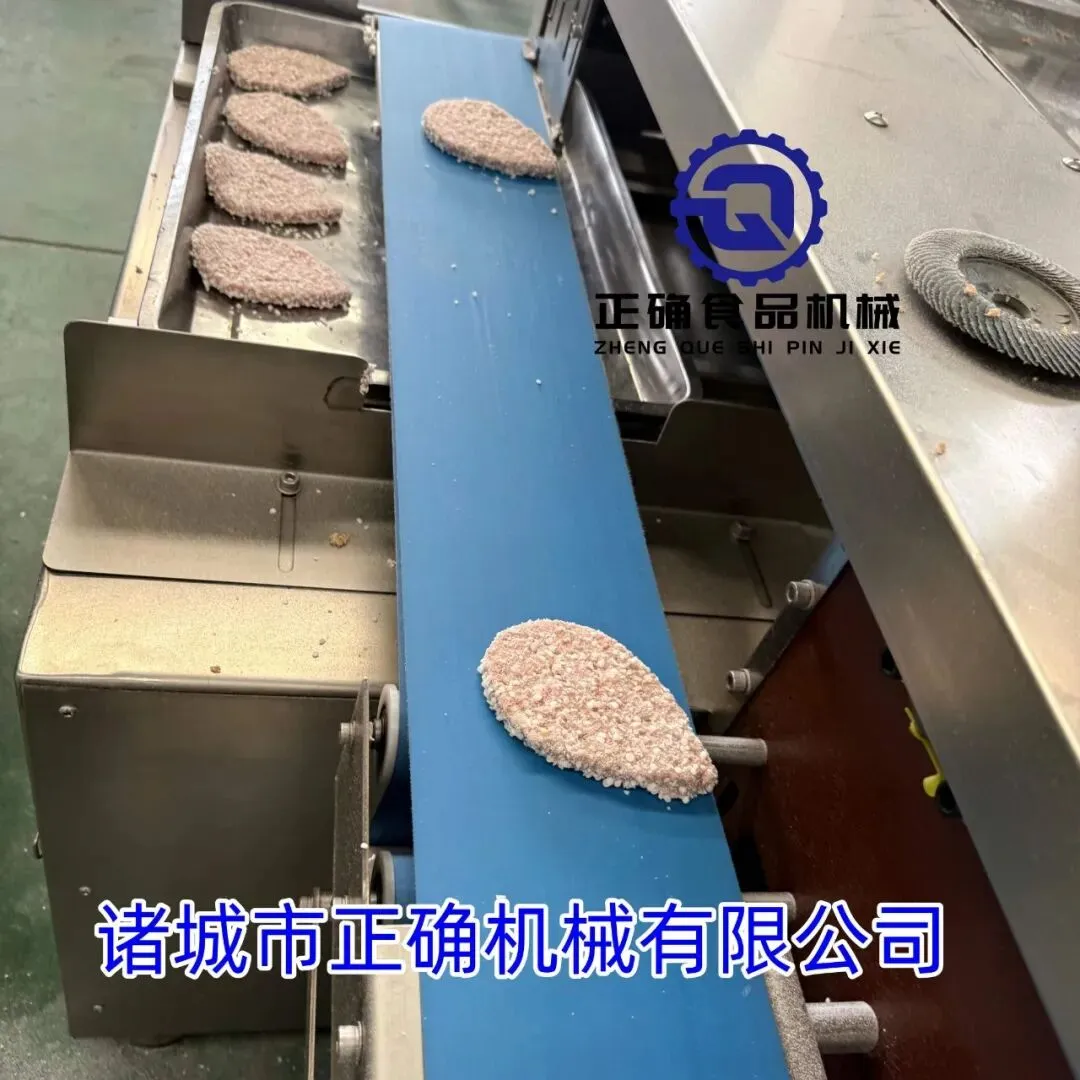 正确奶香鸡排自动成型上浆涂裹油炸摆盘生产线 成型涂裹油炸摆盘