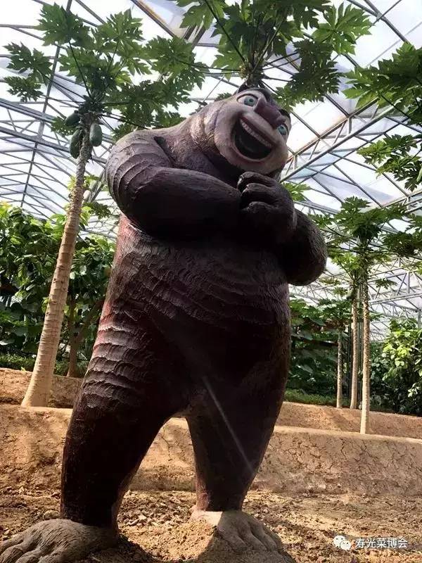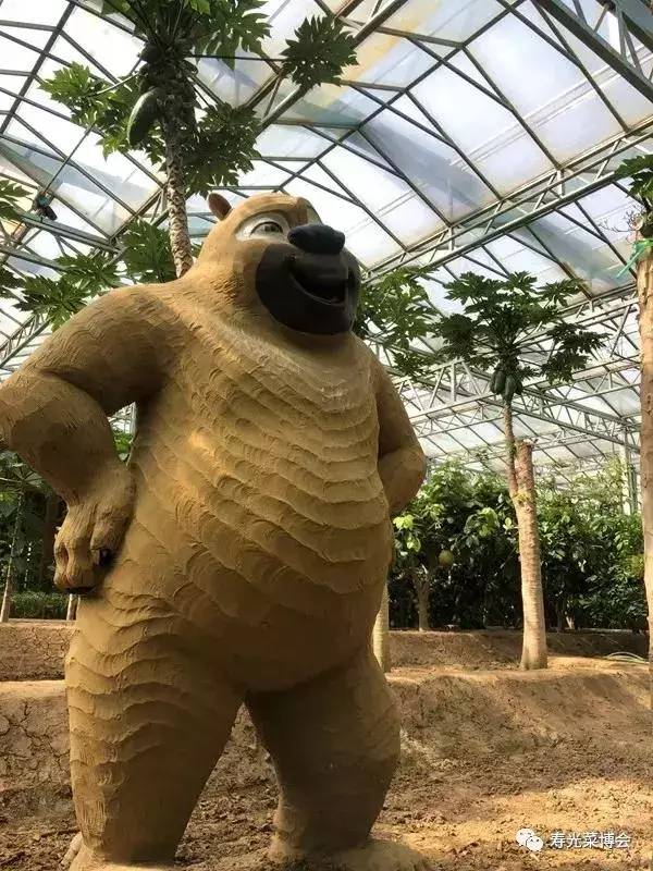 《熊出没》里的熊大、熊二也来展馆“凑热闹”,憨态可掬的站立于木瓜丛中,甚是可爱