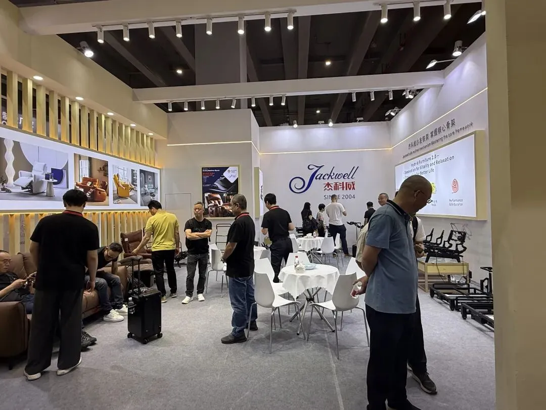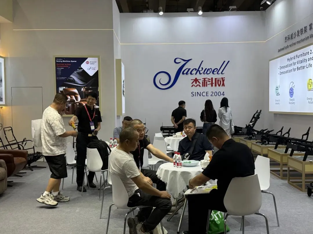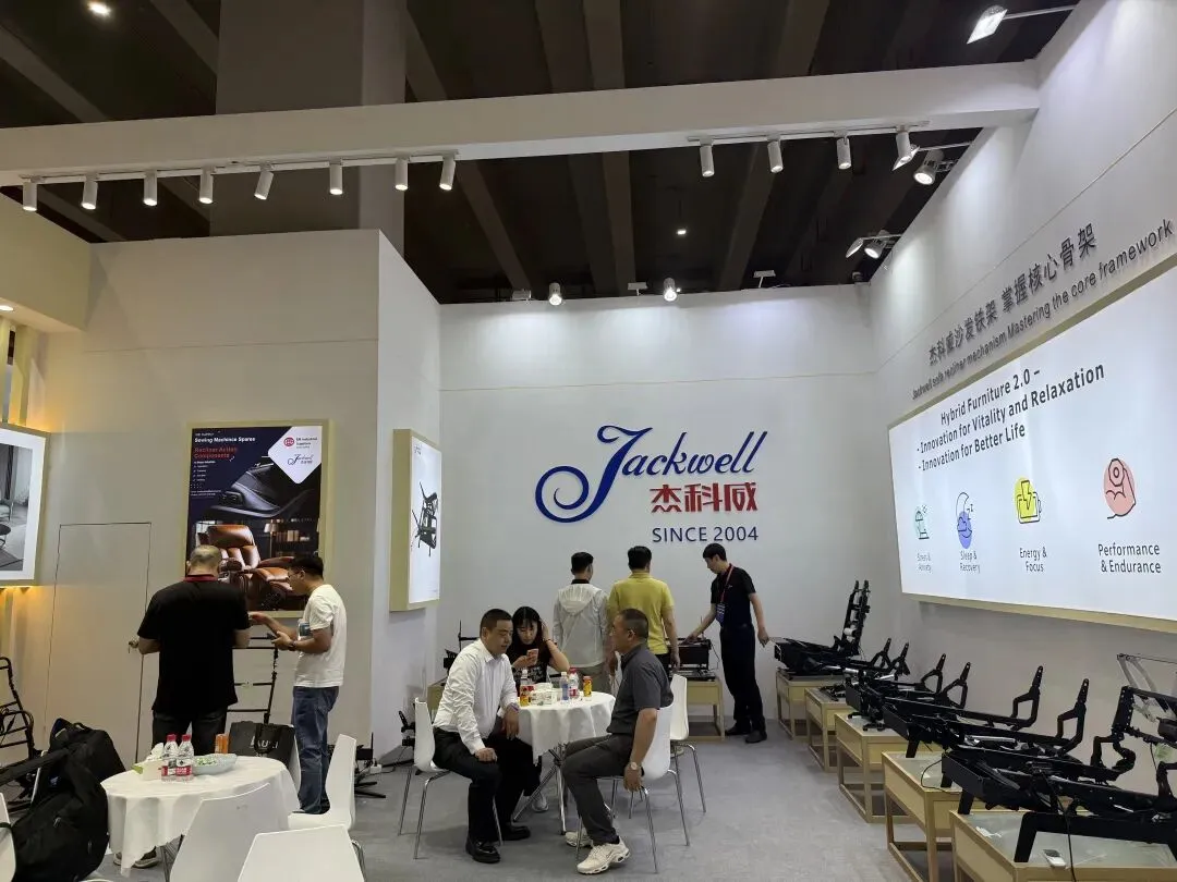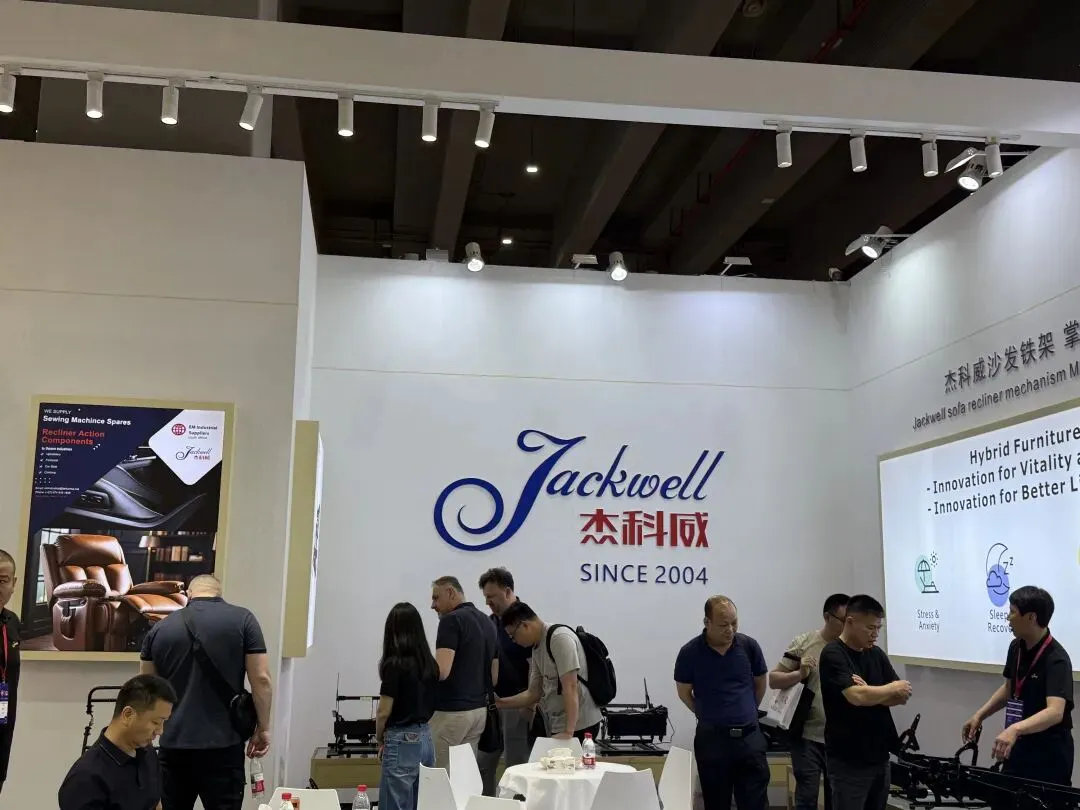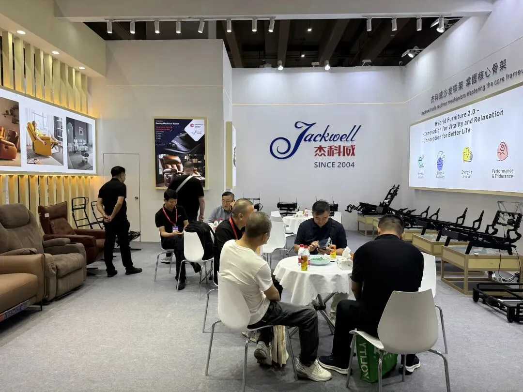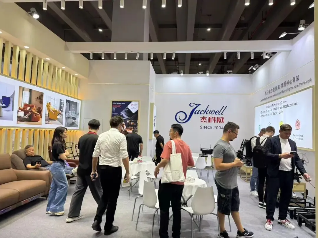 广东捷科智能家居有限公司(杰科威 Jackwell)携旗下核心产品——功能沙发核心骨架、智能家具机构等重磅参展,展位(广交会展馆C区 S16.2D07)现场客商云集,交流洽谈氛围热烈,展现出强劲的品牌实力与行业吸引力。