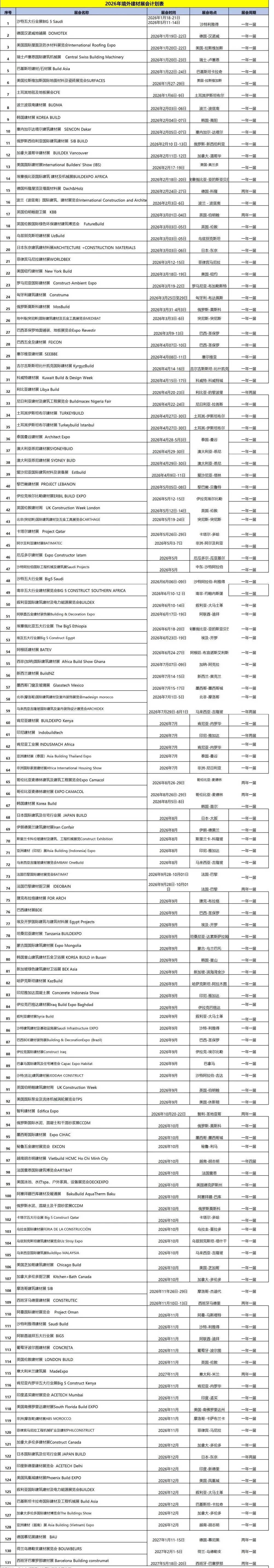 2026年境外建材展会计划表