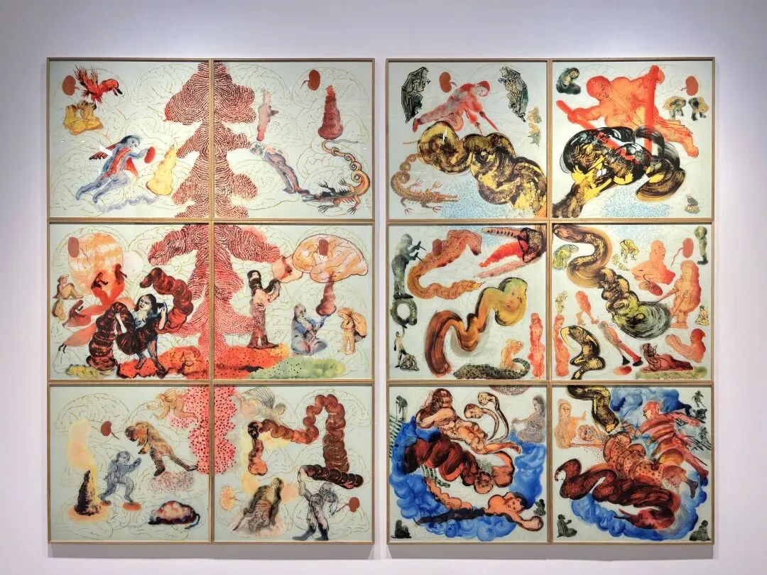 作品核心:纽约艺术家徐梯善自1980年代起便探索人体与技术的关系,在《屏肤:袒露(单联3)》中,肉质般的表层翻卷剥离,露出诡异的凹腔与突起,以生物形态与数字界面般的表面,隐喻身体与技术的深度融合。