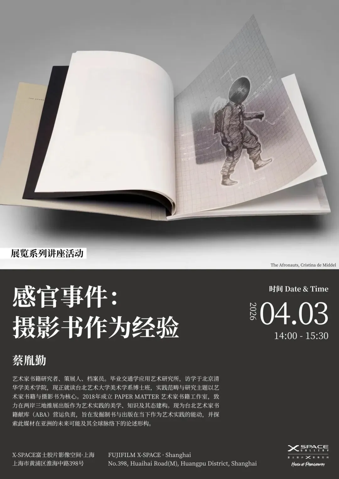 4月2日至4月23日,X-SPACE富士胶片影像空间·上海即将展出「未竟之境」艺术家摄影书作品展,此次展览将由台北艺术家书籍文献库(ABA)策展人蔡胤勤挑选其机构典藏品以及调度X-SPACE书屋所收藏之摄影书作品共同呈现。