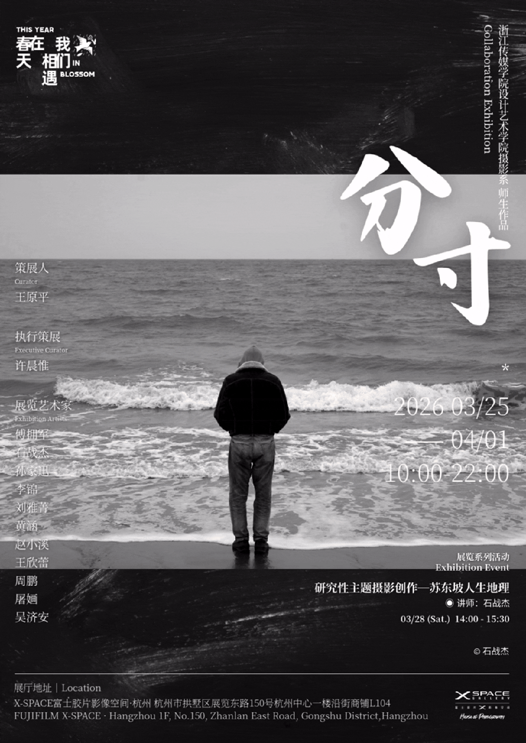 古往今来,“分寸”无处不在。艺术创造也存在着一种判断上和表现上的“分寸”感。对所谓“分寸”感的把握程度,实质上是实现艺术家自身特征即与他人艺术特征根本差别的过程,而非认同的过程,这点显然是艺术创作中最有意思的。?-?展览相关活动|艺术家展览讲座「研究性主题摄影创作—苏东坡人生地理」???分享嘉宾:浙江传媒学院 石战杰⏰️时间:2026.03.28 (周六) 14:00 - 15:30?费用:免费??地点:杭州市拱墅区展览东路150号杭州中心一楼沿街商铺L104(近地铁1/3号线武林广场站A口)?点击报名:03/28研究性主题摄影创作—苏东坡人生地理-?策展人|Curator王原平?执行策展|Executive Curator许晨惟?展览艺术家|Exhibition Artists傅拥军石战杰孙家迅李锦刘雅菁黄涵赵小溪王欣蕾周鹏屠婳吴济安?展览信息|分寸?展期:2026.03.25 - 2026.04.01?地点:杭州市拱墅区展览东路150号杭州中心一楼沿街商铺L104(近地铁1/3号线武林广场站A口)?门票:免预约/免费