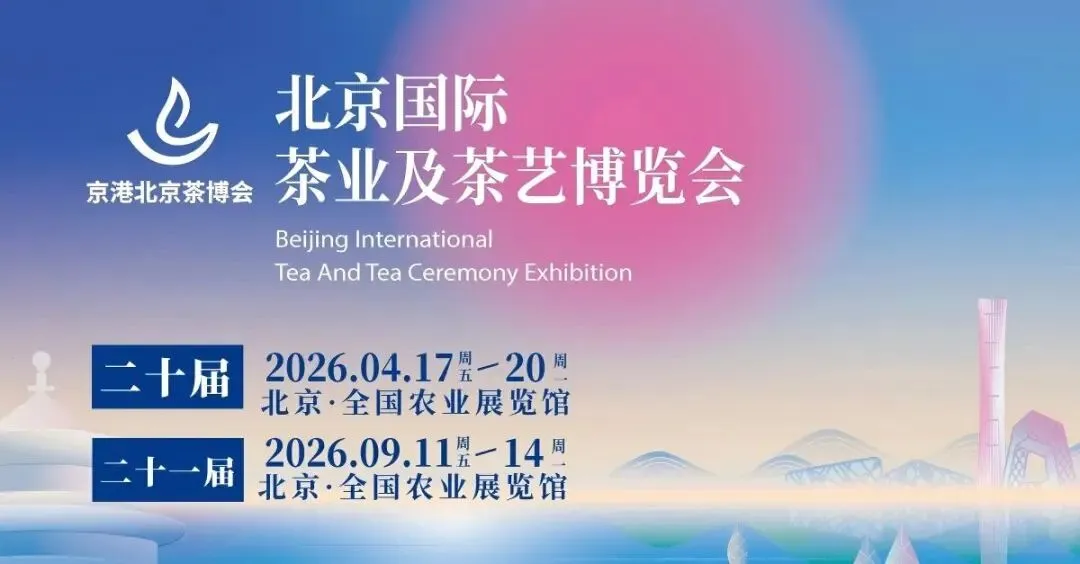 第二十届京港北京国际茶业及茶艺博览会(春季)(简称:京港北京茶博会/北京茶博会)将于2026年4月17日至20日在北京全国农业展览馆举办。预计展览面积3万平方米,设1300余展位。展品涵盖绿茶、红茶、白茶等六大茶类原产地春茶,以及紫砂、陶瓷茶具、茶服、茶家具、茶叶包装及深加工产品。