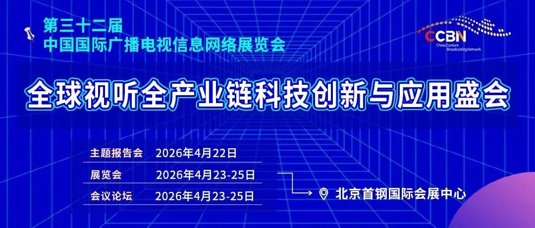 由国家广播电视总局指导、广播电视科学研究院主办的第32届中国国际广播电视信息网络展览会(CCBN2026)将于2026年4月22-25日在北京首钢国际会展中心举行。其中,开幕式暨主题报告会于4月22日举办,展览会、论坛活动于4月23-25日举办。展览面积5万平方米,会议论坛和国际交流活动20余场,预计国内外专业观众8万人次。