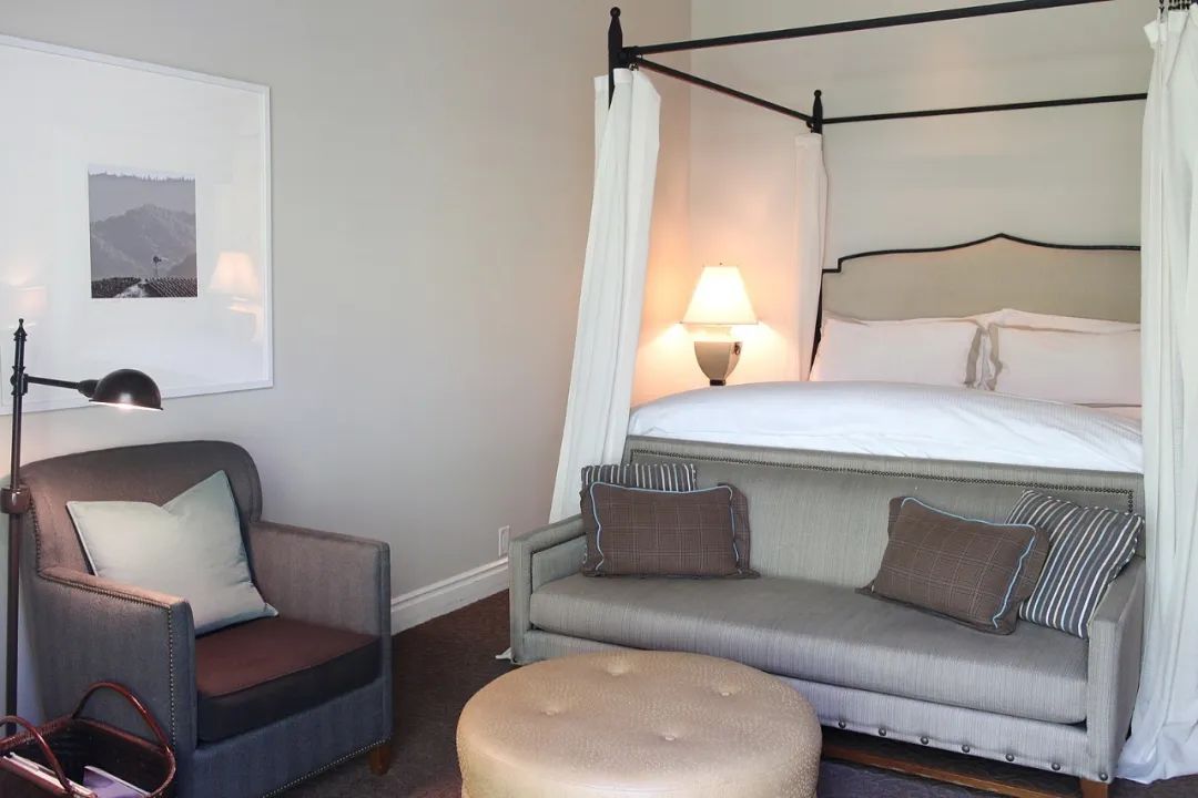 位纳帕山谷 Yountville 小镇的4.5星酒店 Hotel Yountville,每个房间都有一座火炉,出去还有一座小小的私人露台,看起来很有乡村气息。Hotel Yountville 风格很有纳帕山谷的气息,酒店每一间都是独立的,有着乡村酒庄的气氛。房间空间超级宽敞,挑高的屋顶设计让整体空间更开阔。