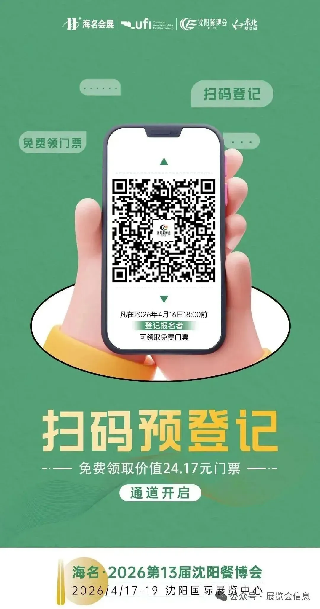 海名・2026 第 13 届沈阳餐博会早鸟票申领进入倒计时!原价 24.17 元的专业观众门票,现预登记即可 0 元锁定!
