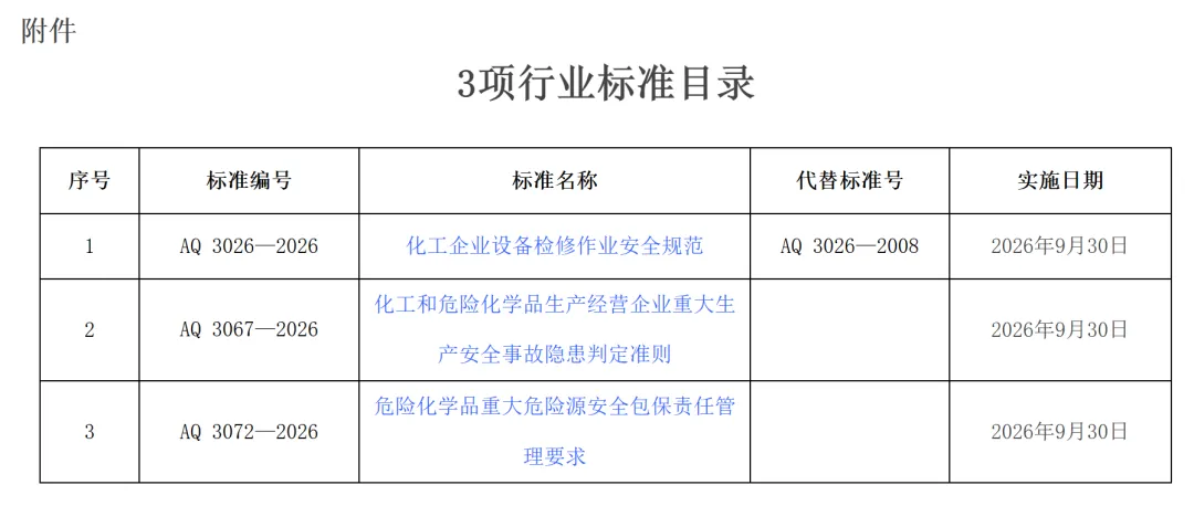 应急部公布《化工和危险化学品生产经营企业重大生产安全事故隐患判定准则》等3项标准