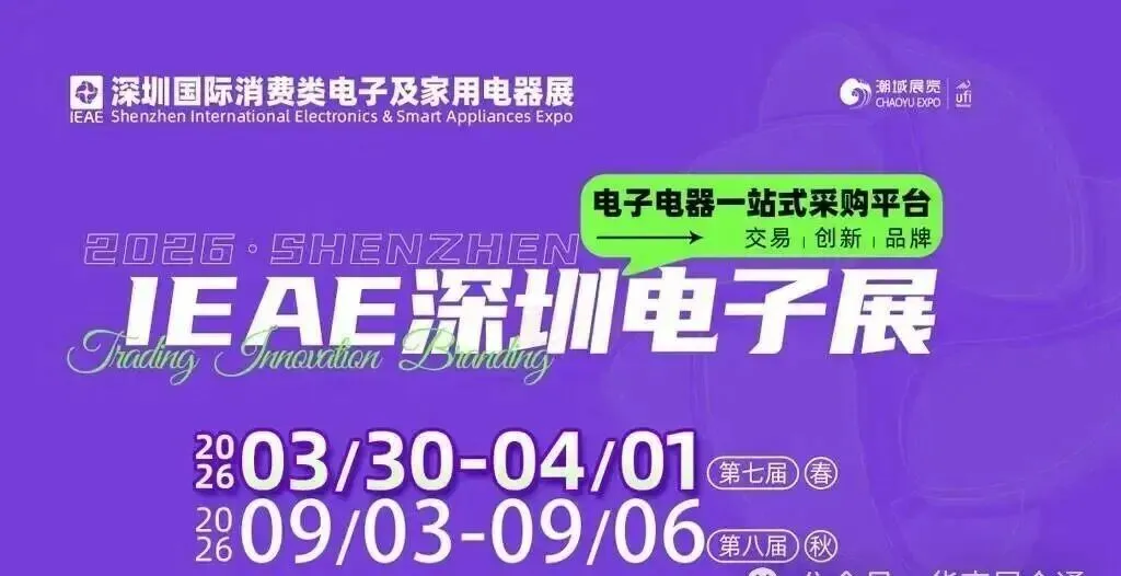 作为中国电子电器垂直领域的专业展会,2026IEAE深圳国际消费类电子及家用电器展(春)将于3月30日-4月1日在深圳福田会展中心盛大举办!