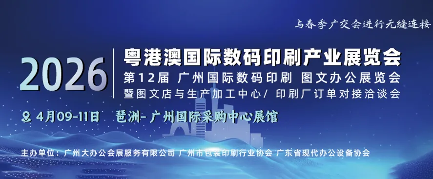 2026粤港澳国际数码印刷产业展览会暨第12届广州数码印刷、图文快印展览会将于4月9-11日在广州国际采购中心举办。展览会将同期举办行业发展论坛和全民公开课,更多融入喷墨印刷、图文快印、广告印刷、办公设备和影像后期制作、档案制作等领域,全面实现相关领域的跨界与融合,倾力为与会各方搭建一站式(展览+交流+销售)高端服务平台。