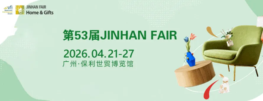第53届广州(锦汉)家居用品及礼品展览会(JINHAN FAIR)将于2026年4月21–27日在广州保利世贸博览馆举办!作为中国专业家居礼品出口贸易平台,JINHAN FAIR开办家饰及家具、园林及户外用品、季节装饰及礼品三大专业主题展,集中打造品类最全、场景最丰富、设计最新颖的一站式出口贸易型家居展,引领全球家居采购风潮。