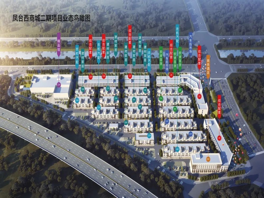 凤台西商城二期建设用地约130亩,建筑面积约10万平方米,总投资约4亿元,共有22幢物业,集中农业农资农机、汽配新能源、建材家居等主导业态,打造品类齐全、品牌多样、布局合理、配套完善的一站式生产生活采购基地,建设完成后必将成为凤台又一新地标。