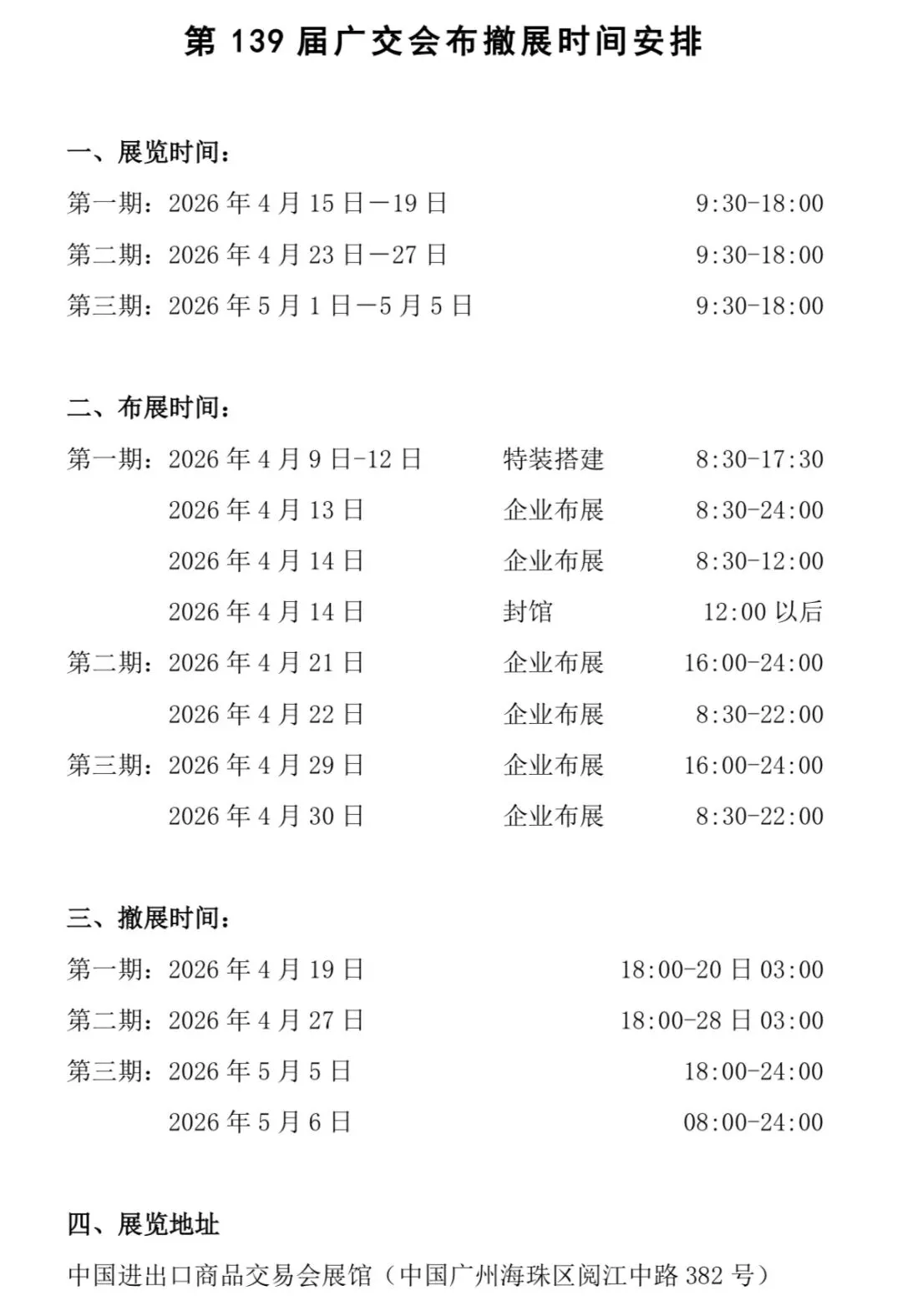 第 139 届广交会布撤展时间安排