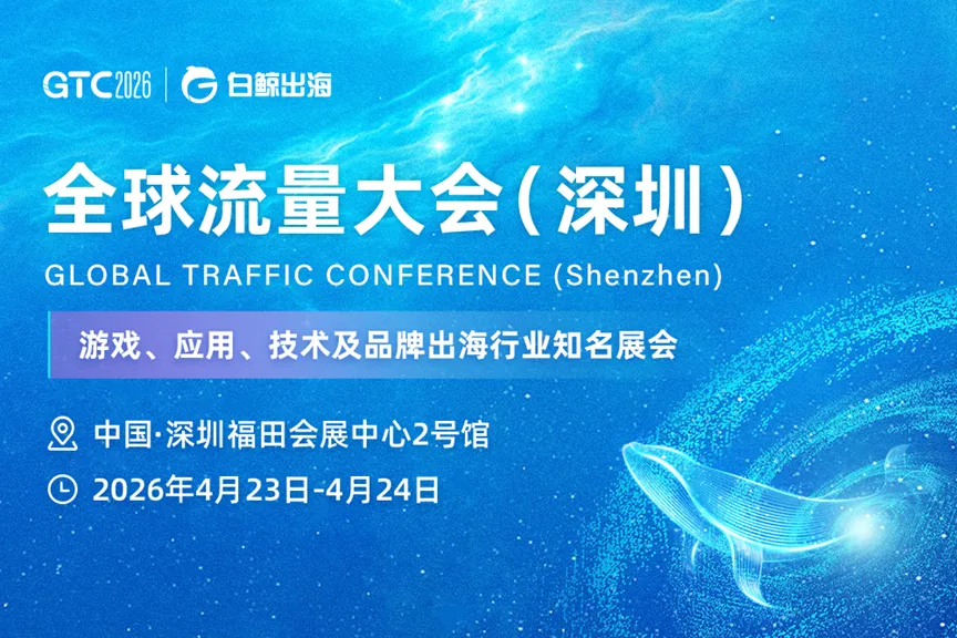 GTC2026全球流量大会(深圳)将于2026年4月23日至24日在深圳会展中心2号馆举行。在全球经贸底层逻辑深刻裂变、企业出海诉求从“走出去”转向“扎下根”的背景下,本届大会由白鲸出海主办,聚焦中国企业从“规模化出海”迈向高质量全球化的关键转折点。预计将汇聚超200家展商与30000名从业者,打造以资源对接、趋势洞察、生态共建为核心的行业顶级盛会。