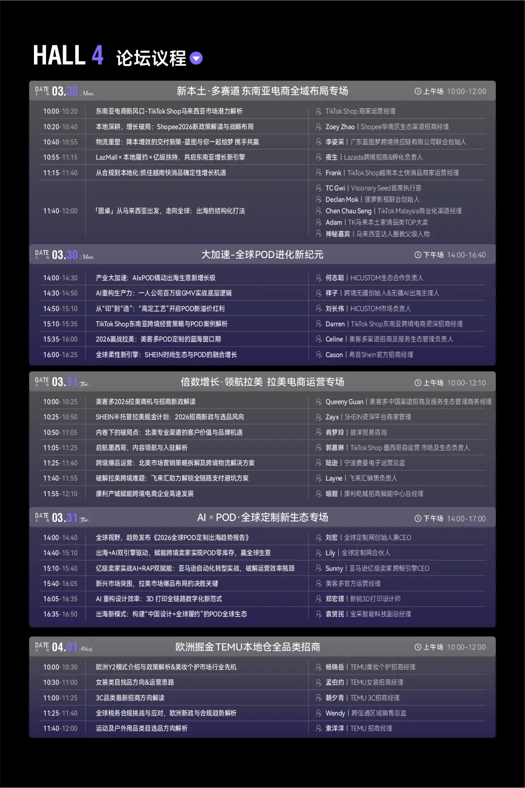 本届展会重磅打造6大主会场,同期带来30+细分主题分享,围绕「趋势 × 实战 × 资源 × 合作」四大核心维度,系统构建跨境增长方法论。