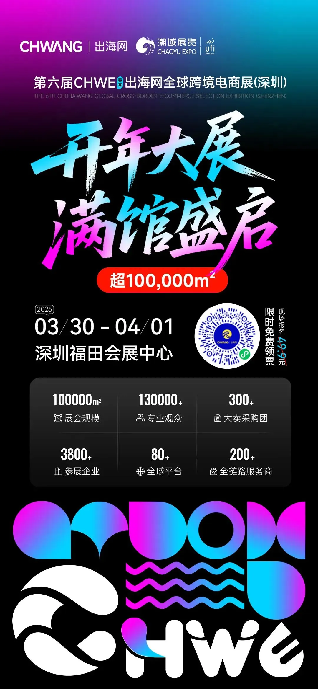 3月30日 - 4月1日,深圳福田会展中心,第六届CHWE出海网跨境电商展,与你相约!抓紧扫码领票,锁定开春先机!