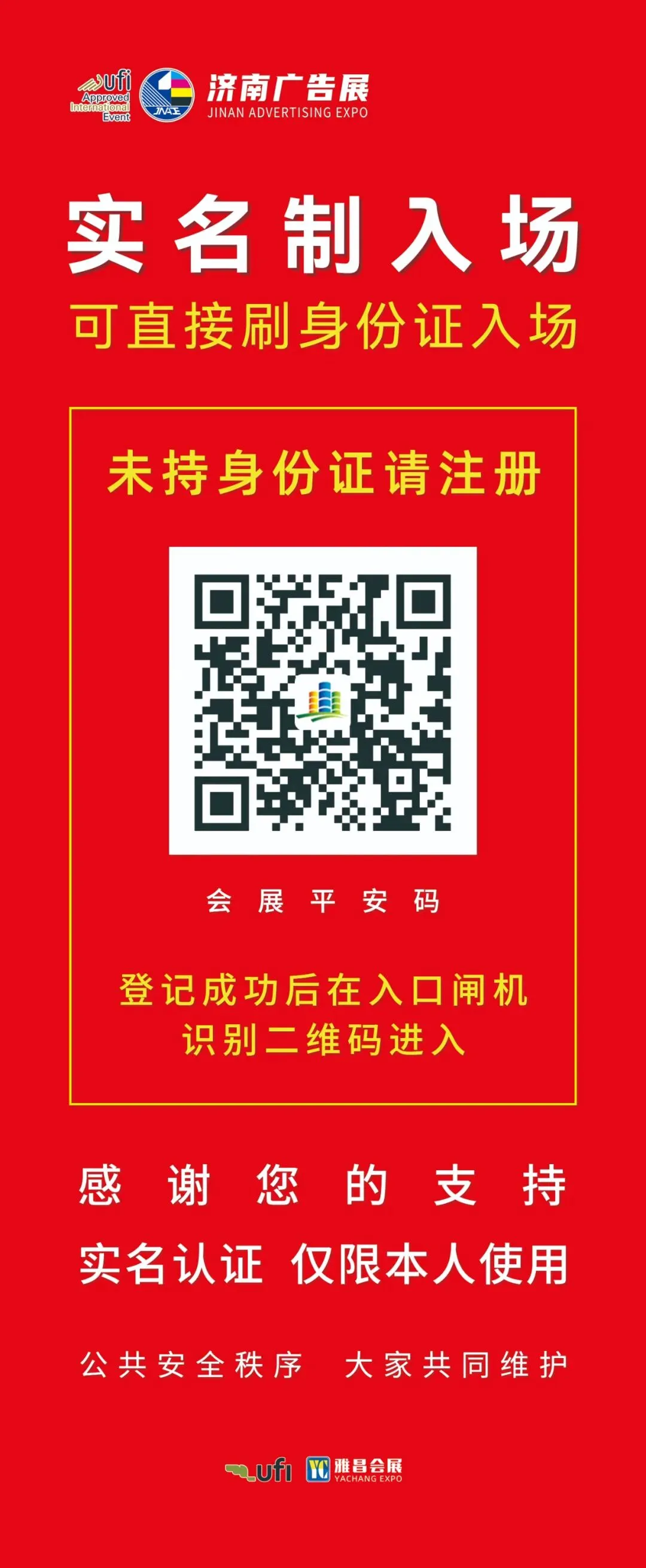 1.喷印、写真、雕刻、切割、吸塑、装裱、刻字、印章设备及相关耗材;2.广告材料:亚克力、喷绘布、模贴、反光材料、各种板材、墨水、喷头;1.图文办公设备:数码印刷机、复印机、晒图仪、绘图仪、扫描仪、数码打样机等;2.图文印后设备:胶装机、切纸机、切卡机、覆膜机、冷裱机、装订机、打孔机、压槽机等;1.LED 显示屏、数码管、模组、点阵、光源、灯条、灯管、控制卡、电源、字边条等;2.标识系统、交通设施、奖杯奖牌、标牌制证、框业;3.灯箱、数字标牌、宣传栏、广告机、广告字、展具、广告新载体、图库。1.展会入场要求实名制登记认证,可直接在入口闸机处刷身份证入场,未携带身份证需通过下方左图二维码登记;