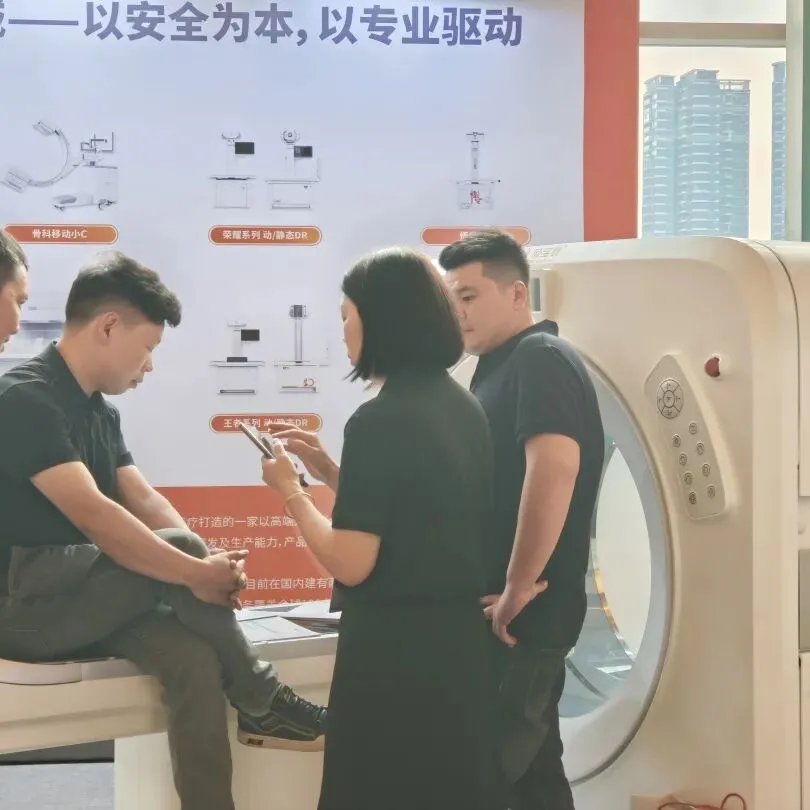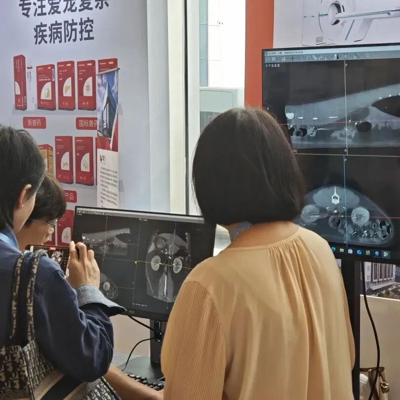 亮丽吸睛的CT真机,与真实清晰的大屏病例展示,吸引医生院长们前来了解。产品与销售负责人一一解答问题,并引导大家上手操作读片软件。