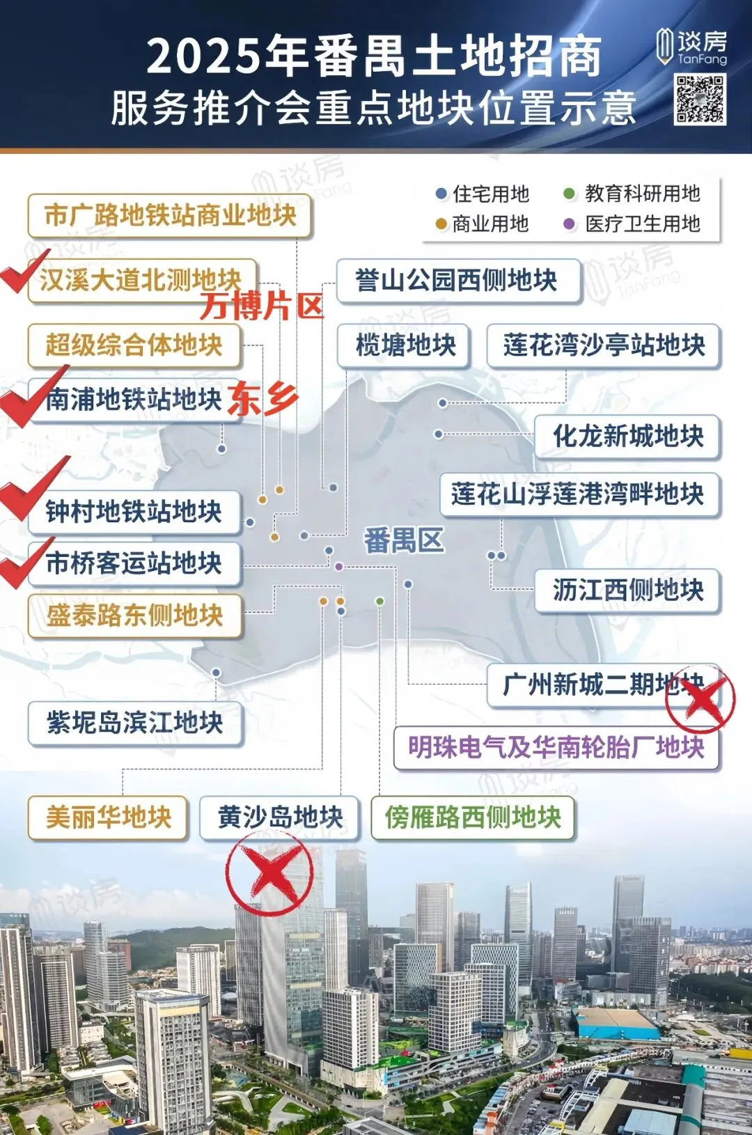先看 2025 年番禺推介会,当时的重点地块,比如黄沙岛地块、广州新城二期等,已经顺利出让。