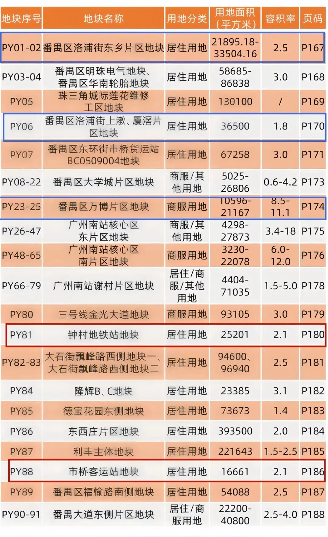 比如市级名单里的PY01-02 番禺区洛浦街东乡片区地块,实际上就是区里的南浦地铁站地块,即洛浦街 BA0206303 地块。