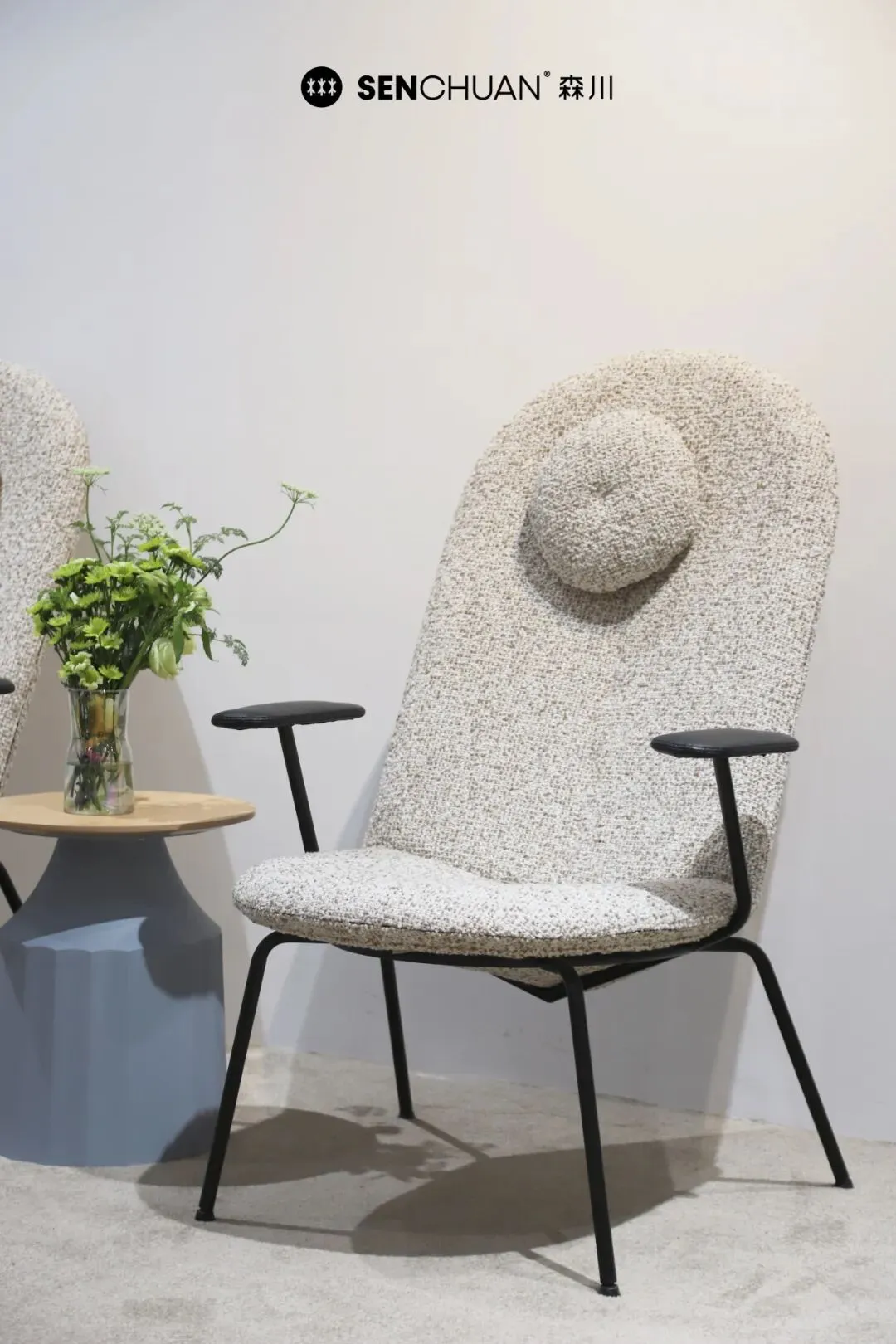 LOOP系列桌子以镂空弧形桌腿为标志,简洁造型适配办公与餐饮多元空间。CURVE双人沙发靠背附设桌板,既适合办公区休息角,亦可置于酒店大堂或客房区域,满足临时置物与轻办公需求。BEAN单人小沙发体量小巧,圆润造型搭配金属腿架。GEO躺椅款几何线条与软包形成对比。CROWN矮背躺椅实木腿架稳固,靠背不遮挡视线。