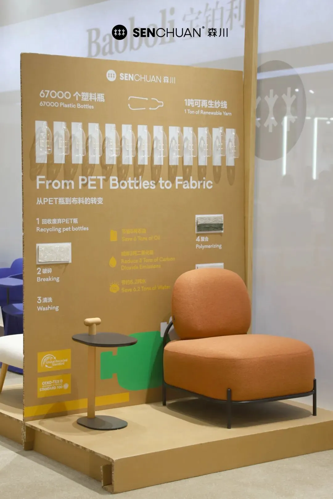 培训区与环保材料展示区整合为一,这里呈现完整的材料生命历程,材料并非孤立陈列,而是与展区内产品形成对应。可持续理念在这里不只是墙上的说明文字,而是可追溯、可感知的真实存在。