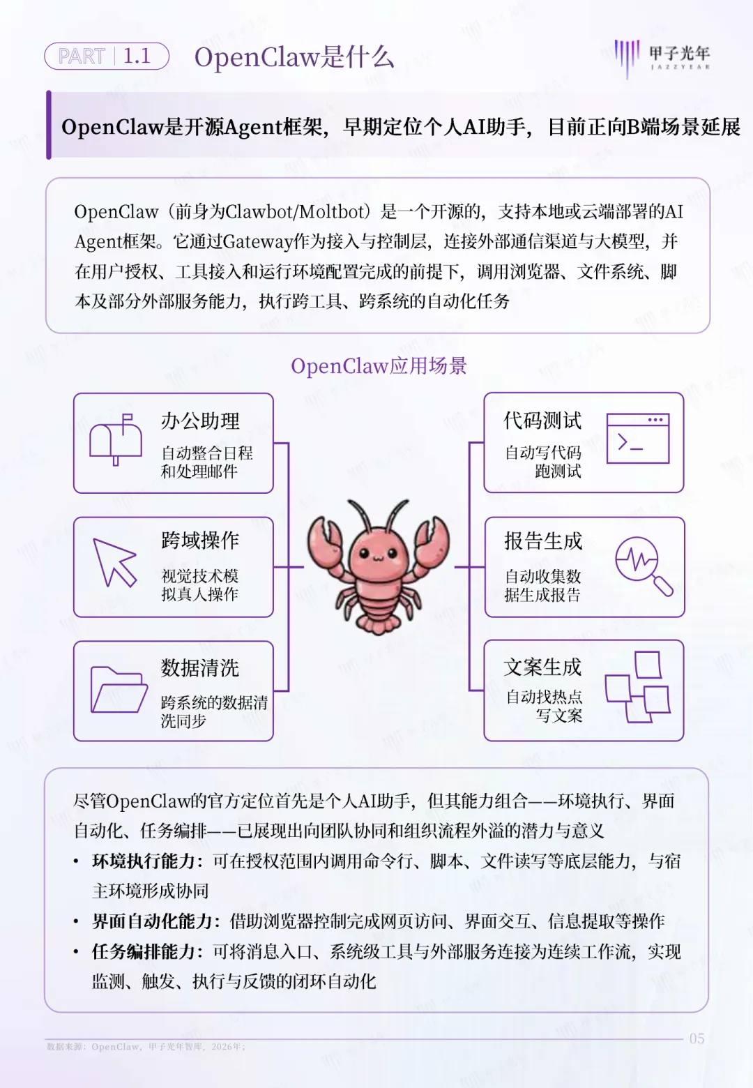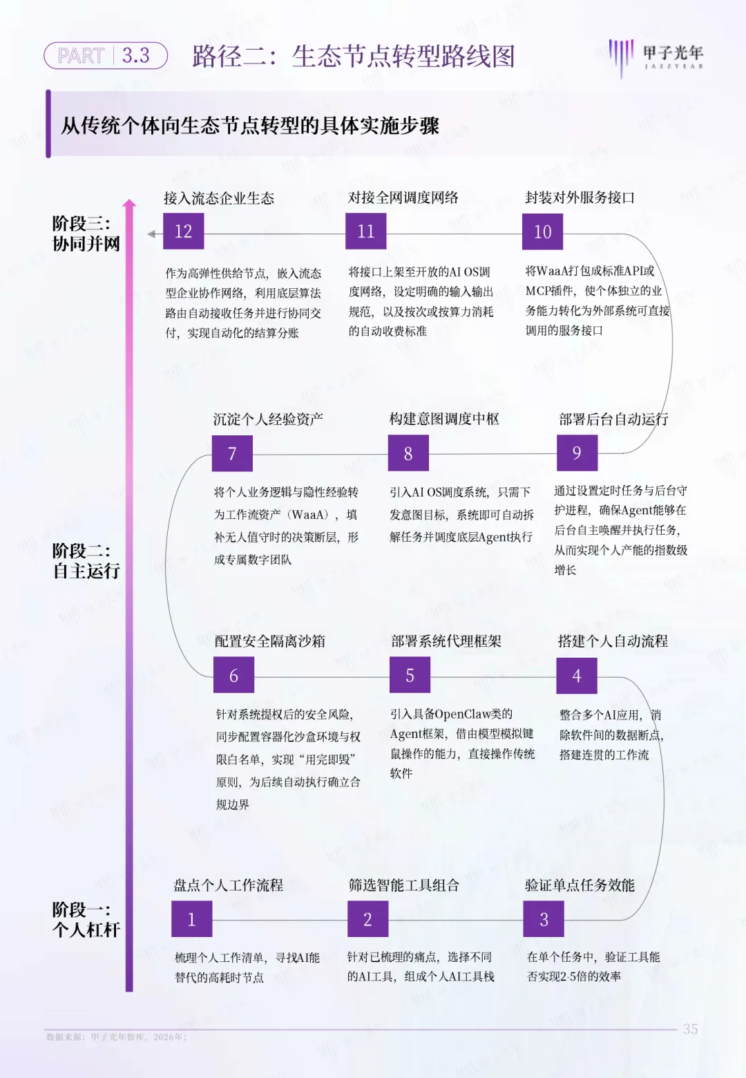 对于个体来说,同样有清晰的落地路径: - 梳理自己的核心能力,用OpenClaw搭一个能解决单一问题的Agent,比如自动写文案、自动做报表,先给自己提效;