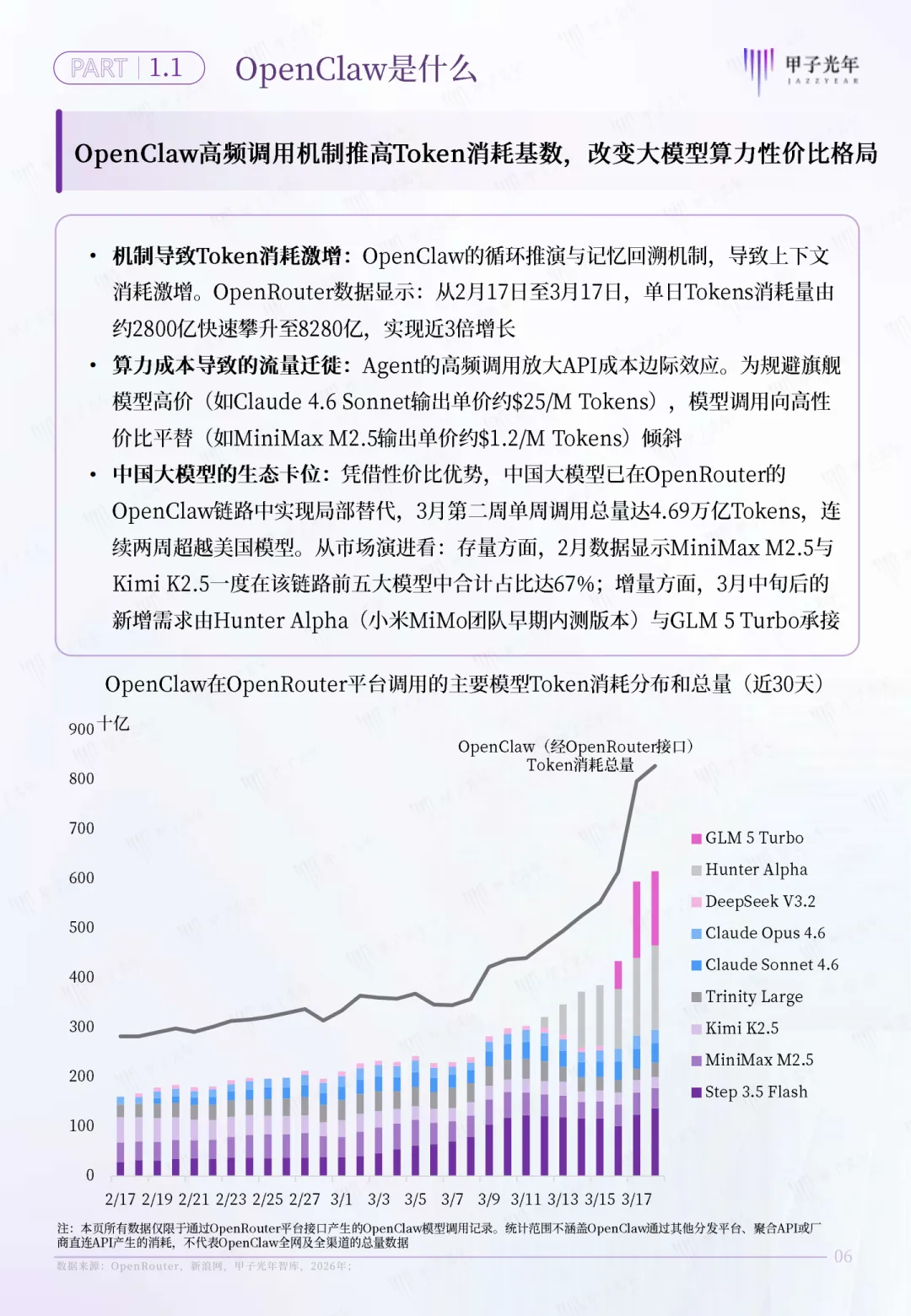 2025年11月还只是极客圈里一个小众脚本,到2026年3月,GitHub星数就突破33万+,NPM下载量超220万,4个月走完了AI Agent行业十年的发展之路。OpenClaw的爆火,从来不是又一次AI概念的狂欢。它真正做到了让AI第一次以“数字员工”的形态,完整接管了现实中的工作流;更在底层逻辑上,撬动了延续百年的企业组织运作模式,宣告了AI原生组织时代的全面到来。从极客脚本到全球神话,OpenClaw到底是什么?很多人会问,现在大模型这么多,OpenClaw到底有什么不一样?先给大家一个最通俗的解释:我们熟悉的GPT、Claude、Kimi这些大模型,就像一个满腹经纶的“军师”,能给你出主意、写方案、解答问题,但它永远只停留在“说”的层面,不会真的动手帮你把事办完;而OpenClaw,就是给这个军师装上了“手脚”“眼睛”和“执行中枢”,让它能听懂你的需求,自己拆解任务、调用工具、跨系统操作,直到把事情全流程落地,形成完整的“决策-执行-闭环”。它的本质,是一个开源的AI Agent框架,早期定位是个人AI助手,如今已经快速向企业级场景全面延展。这张图能直观看到它的炸裂增长:2026年1月20日,它的GitHub星数还只有0.55万,短短2个月时间,就飙升到33万+,创下了AI开源项目的增长纪录。更难得的是,它的技术迭代速度完全匹配了热度增长。从2025年11月上线基础的本地持久化、心跳机制,到2025年12月推出统一Gateway架构,2026年1月上线Docker沙盒隔离、插件解耦架构,再到2026年2月完成Gateway 2.0升级、多模态系统穿透,4个月完成4轮关键迭代,快速补齐了从个人使用到企业级部署的全场景能力。从这张架构图能清晰看懂它的运作逻辑:最上层对接微信、Telegram等交互渠道,中间是Gateway网关中枢、Agent执行环境和技能矩阵,底层对接各大主流大模型。就像一个万能的“AI执行中枢”,你只需要说清楚要做什么,剩下的全交给它来完成。而它爆火的核心密码,从来不是让AI变得更聪明,而是让AI真正开始“干活”。比如你说“帮我做一份3月的销售数据分析报告,同步给部门所有人”,之前的AI只能帮你写个报告模板,而用OpenClaw搭建的Agent,能自己打开销售系统导出数据、清洗分析、生成可视化报告、写好邮件、定时发送给对应同事,全程不用你动手操作一步。底层颠覆!OpenClaw正在改写企业与个体的生存规则如果说OpenClaw的技术突破,是让AI拥有了真正的执行能力;那它带来的更深层变革,是彻底推翻了传统的组织形态,重构了企业和个体的生存逻辑。过去几十年,企业的数字化转型,本质上都是“工具堆砌”:买一堆SaaS软件、上一堆AI系统,结果系统和系统之间不通,数据和数据之间隔离,部门墙林立,一个需求要走半个月审批流程。就像给马车装了个发动机,本质还是跑不快,这也是绝大多数企业数字化转型“无效投入”的核心原因。而OpenClaw催生的“流态型企业”,彻底推翻了这个逻辑。- 传统数字化企业,是以流程为中心,AI只是辅助工具,核心资产是软件、人力和厂房,成本是固定的人力和采购成本;
