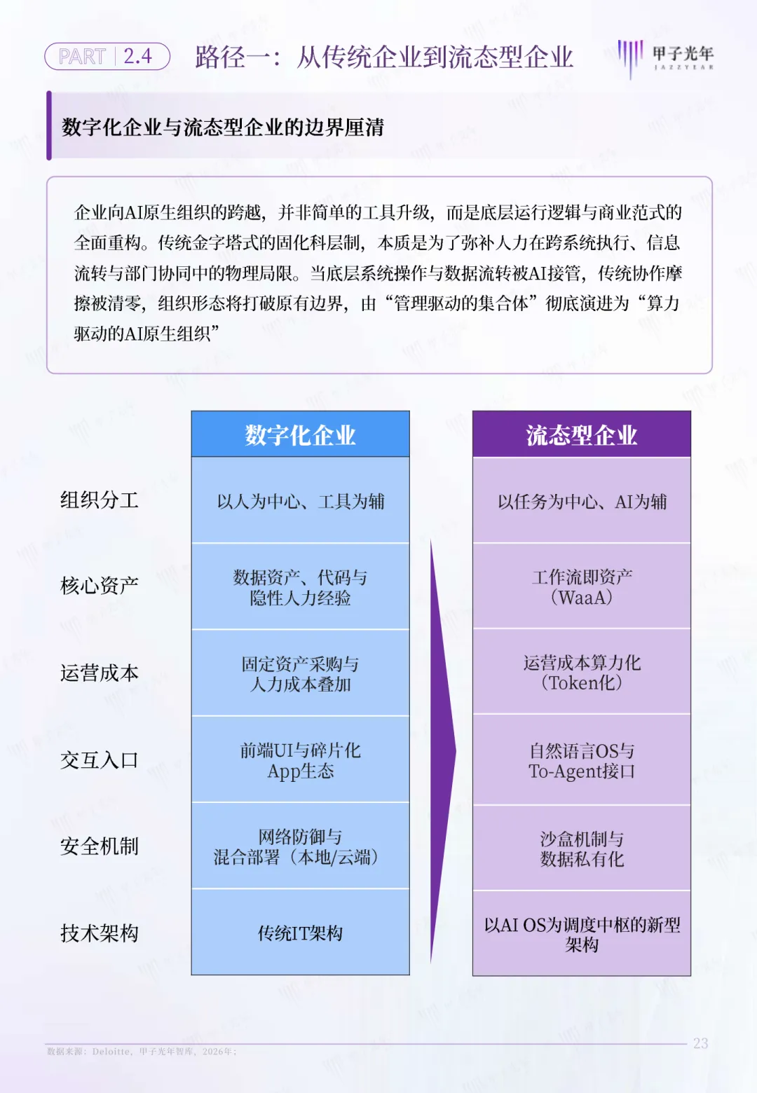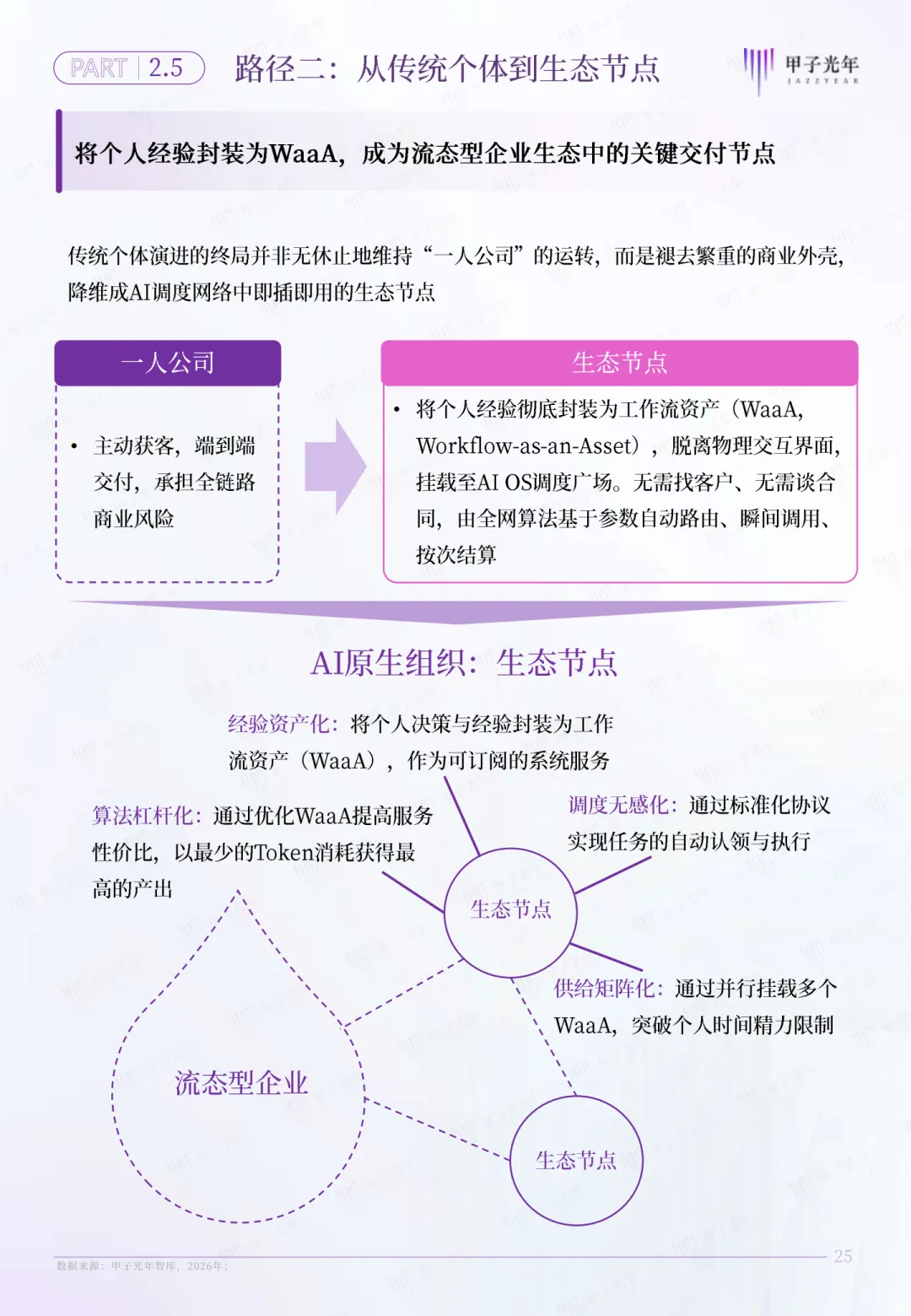 - 流态型企业,是以任务为中心,AI OS是整个企业的调度中枢,核心资产是可复用的工作流(WaaA),运营成本完全算力化、Token化。