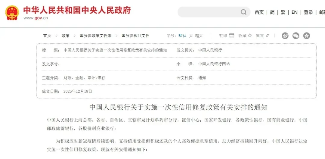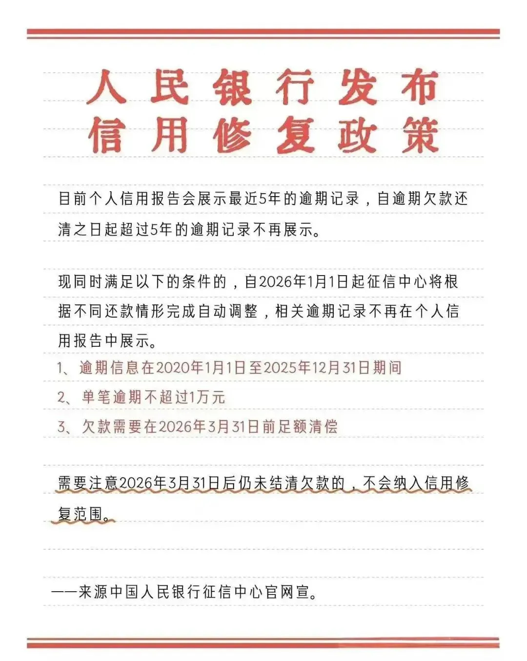 这一表态,将自2025年12月中国人民银行正式发布的《关于实施一次性信用修复政策有关安排的通知》推向了国家战略高度。