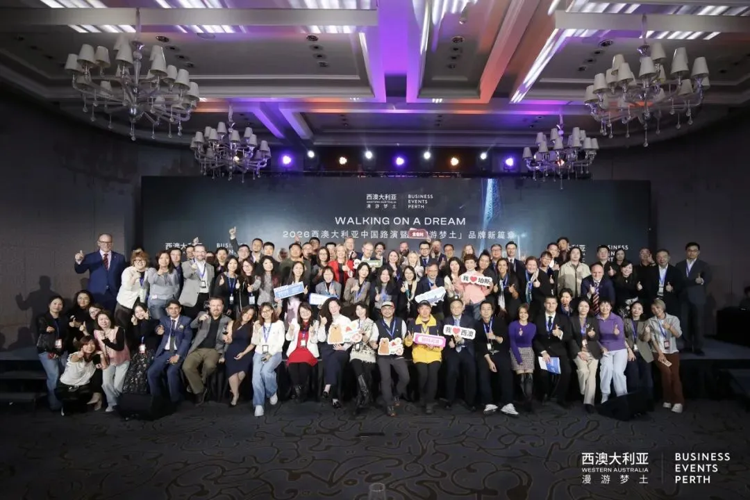3月23日至26日,2026年西澳大利亚中国路演在上海与广州两地成功举办,并同期隆重启动其全球旅游品牌“漫游梦土”(Walking On A Dream)的全新篇章。本次活动由西澳大利亚州旅游局联合珀斯商务会奖局共同主办,西澳大利亚州旅游、警察、道路安全及大南部地区事务部部长瑞斯 · 惠特比阁下(Hon Reece Whitby MLA),西澳旅游局首席执行官安睿哲先生(Chad Anderson)以及珀斯商务会奖局首席执行官盖瑞斯·马丁(Gareth Martin)先生带队官方代表团来华。
