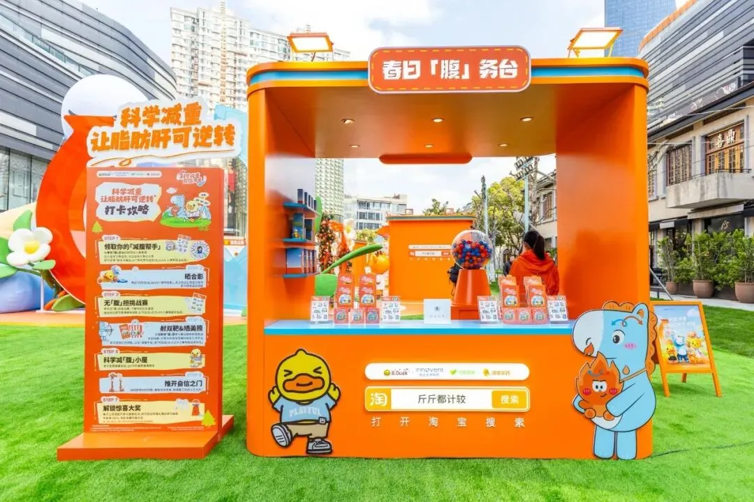 活动打造了一个充满治愈感的“春日健康营地”。参与者从“春日「腹」务台”领取周边开启旅程,依次体验了与巨型IP气膜合影、挑战不同腰围的剪影墙、在“双靶收「腹」营”释放压力、在“科学减「腹」小屋”进行免费体脂或肝弹检测等环节。集齐互动获得的钥匙并完成检测后,可在“惊喜礼赠台”参与抽奖(含爱马仕丝巾等终极大奖)。活动还设有三甲医生对谈环节,以趣味形式科普减重知识。