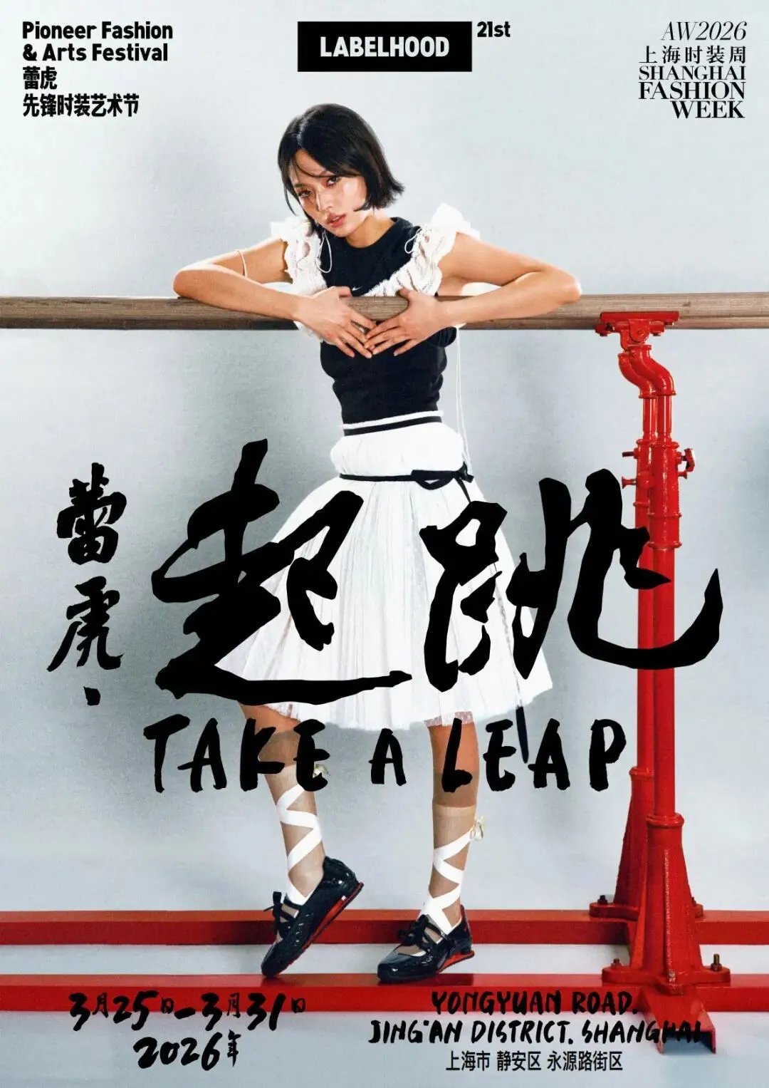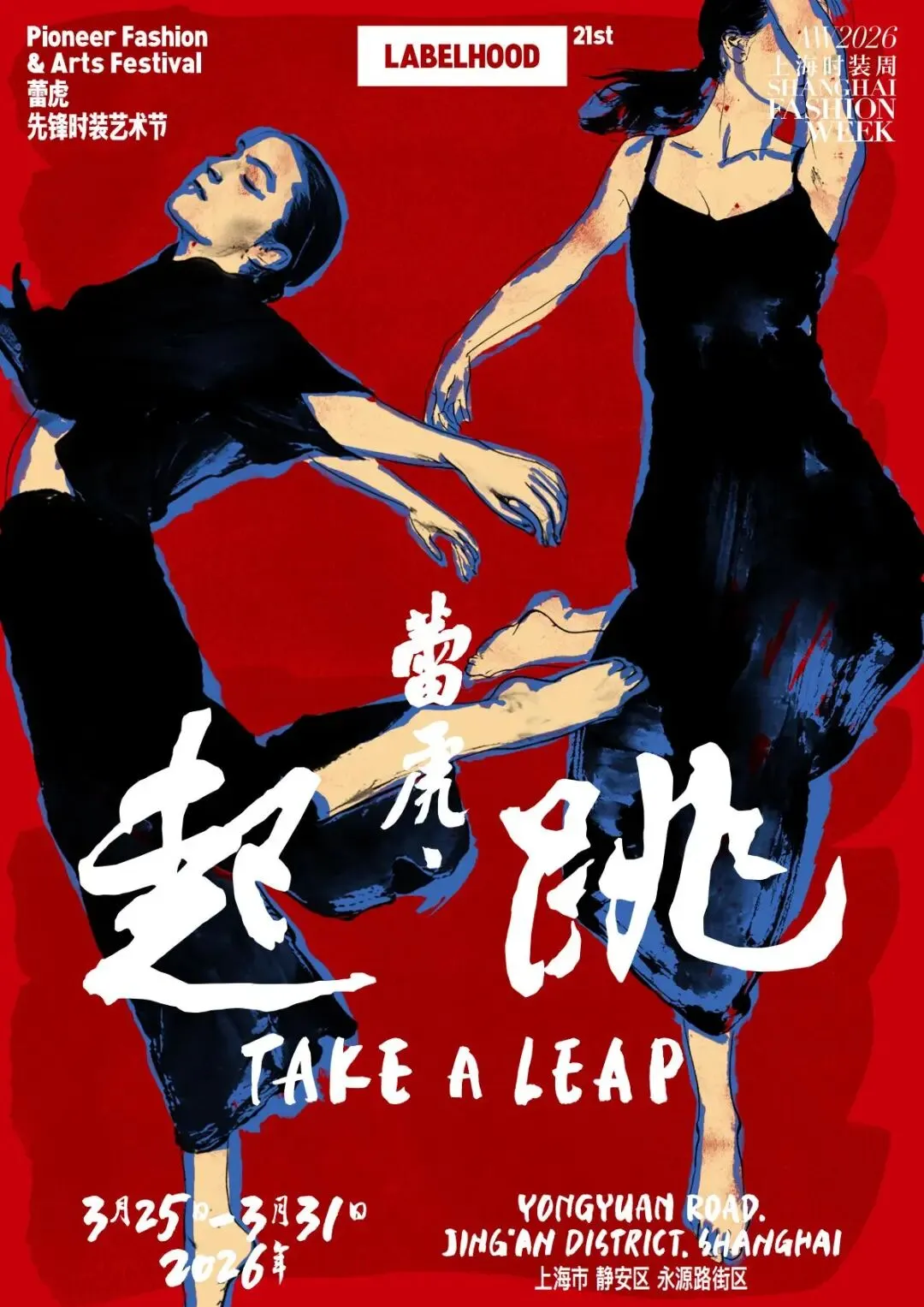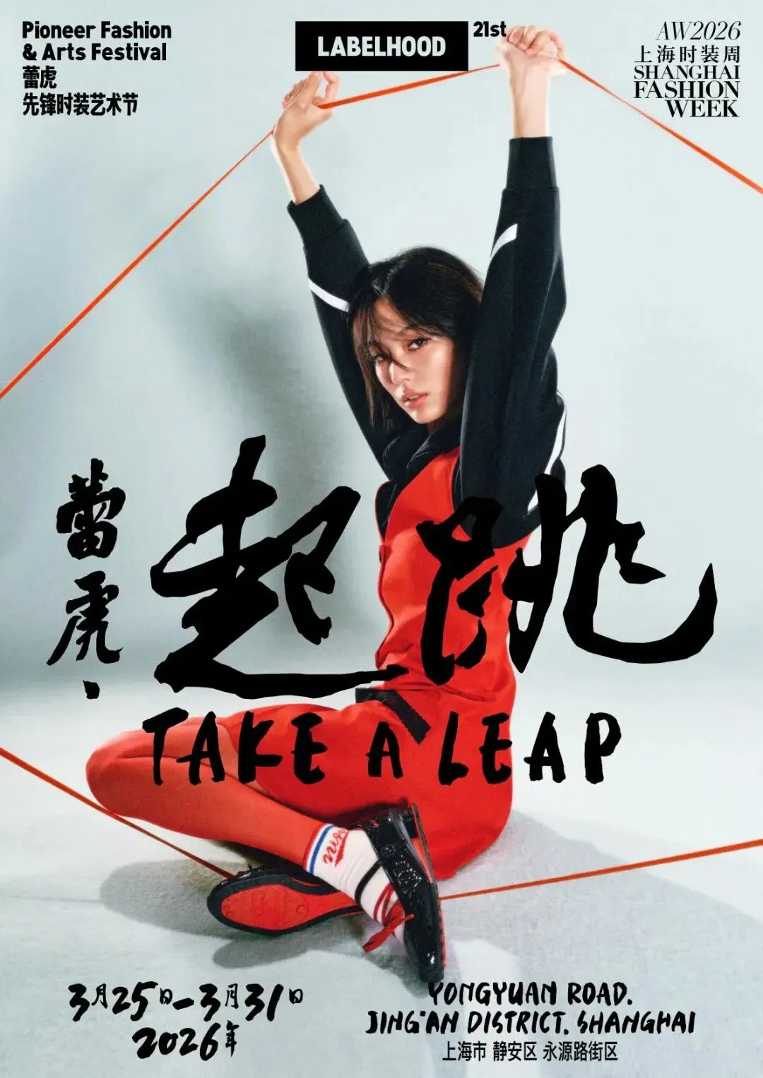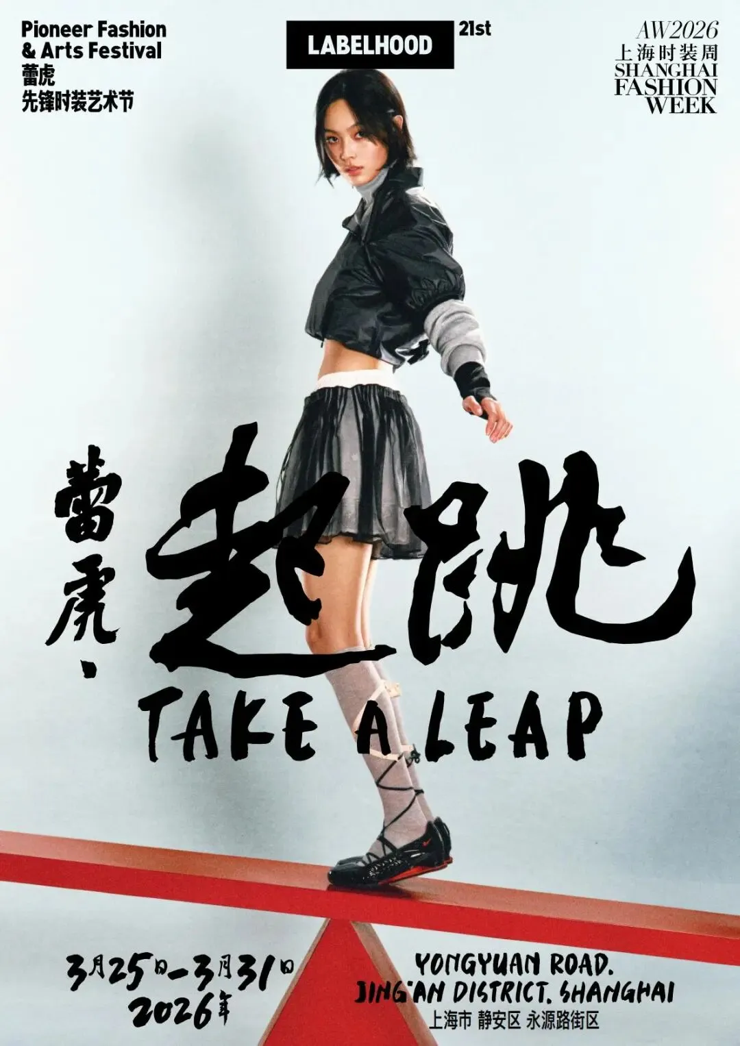 2026年3月25日至3月31日上海时装周,第21季蕾虎先锋时装艺术节将在上海市静安区永源路街区举行。本季以「蕾虎 · 起跳(Take a Leap)」为主题,在走过二十季之后,蕾虎迎来新的周期,也迈向下一个十年的起点。