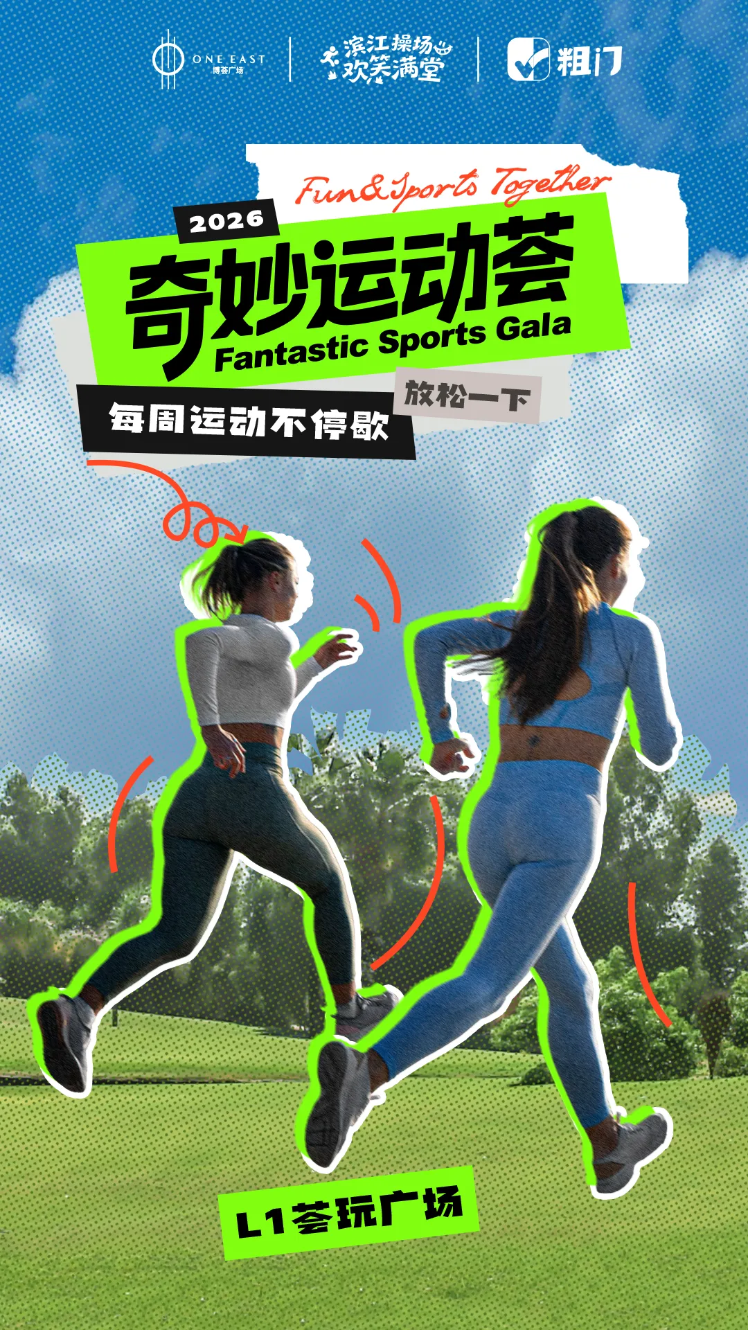 春野拾趣,万物新生,博荟广场 ONE EAST联合「粗门」汇聚多元社群,集结百位玩家,一同拉开全城运动嘉年华的活力序幕,等你一起热力开玩!