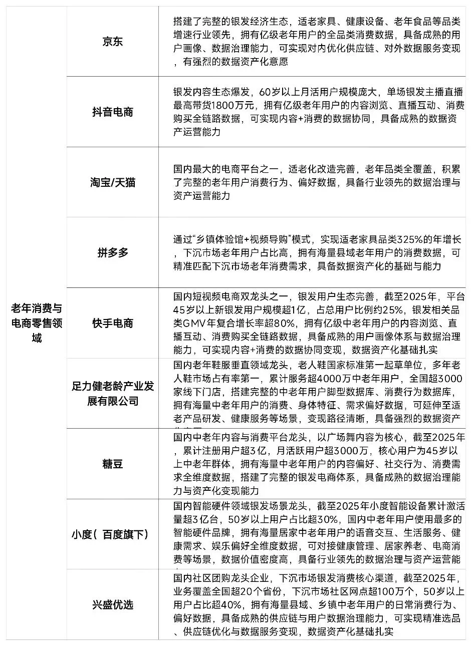 4. 数据价值持续放大:2025年银发经济市场规模预计突破10万亿元,年复合增长率接近20%,老年群体线上消费占比飙接近40%,数据的商业价值持续提升