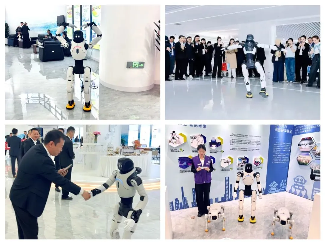 展位现场,智元机器人与机器狗携手亮相,机器人灵活舞动、与嘉宾握手互动,机器狗凭借敏捷身姿吸引众多嘉宾拍照打卡,生动体现了高新教育集团在“科创研学”领域的落地能力。