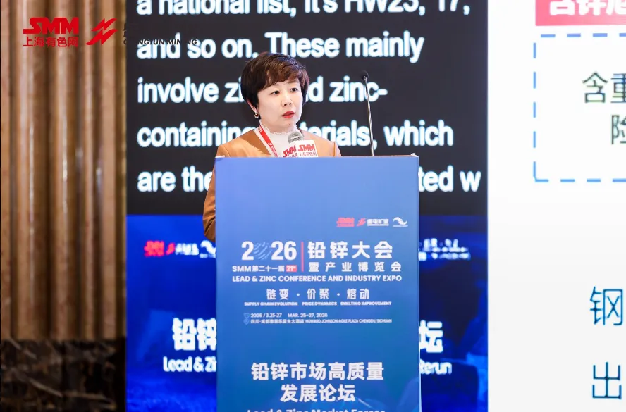 SMM锌分析师华琳对中国再生锌市场的发展情况作出展望。她表示,据SMM预测,从原料供应的趋势上来看,钢厂的二次原料供应量增加,原料供应增加一定程度上支持再生锌的新增产能扩张,根据统计预计2026年再生锌新增产能增加32.5万吨以上,考虑到原料增速不及消费增速,利润压缩下预计2026年再生锌产量增幅有限,在精炼锌总产量的占比小幅提升。