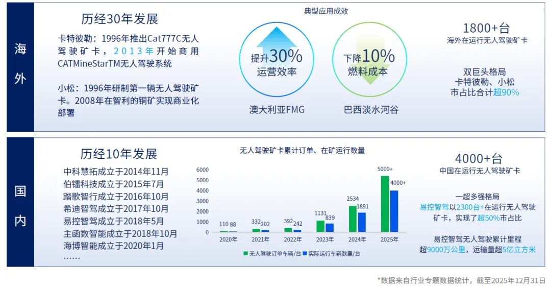 煤矿实现了超3500台无人驾驶矿卡应用,总数量及单矿车队规模均最大