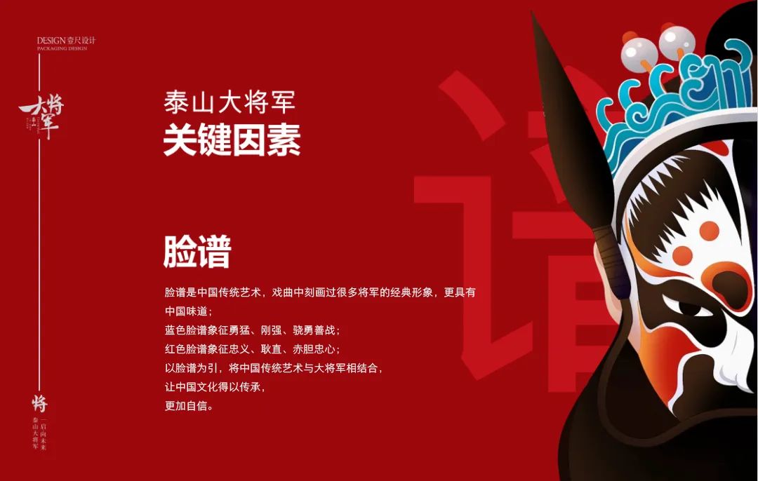 以脸谱为引,将中国传统艺术与大将军结合。包装设计为蓝色脸谱、红色脸谱及国潮风脸谱。蓝色脸谱象征勇猛、刚强、骁勇善战,红色脸谱象征忠义、耿直、赤胆忠心。